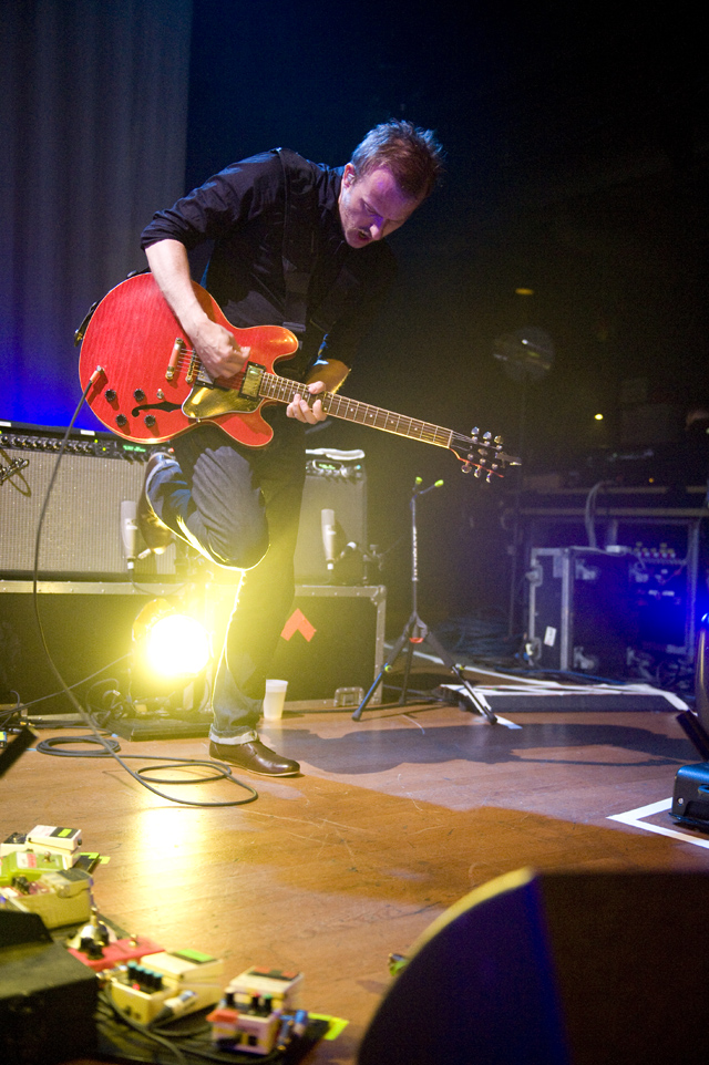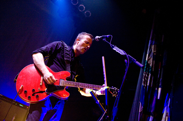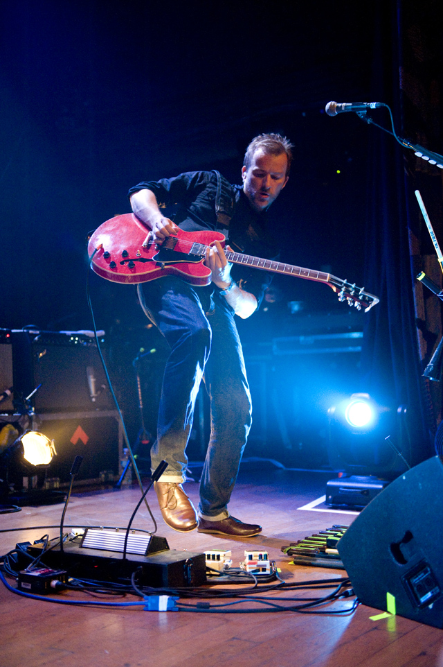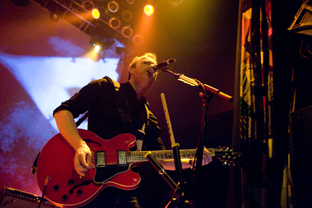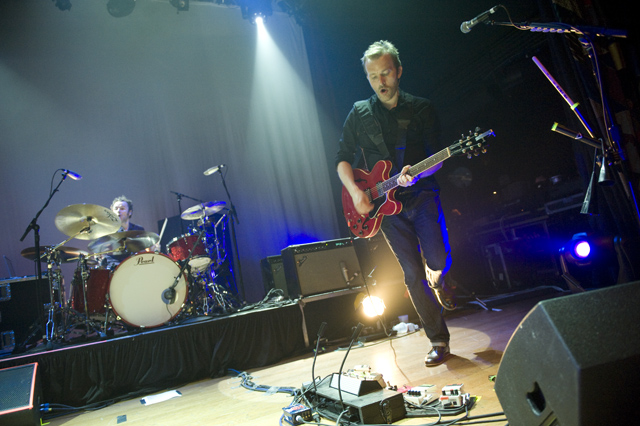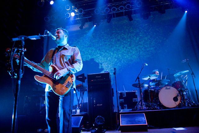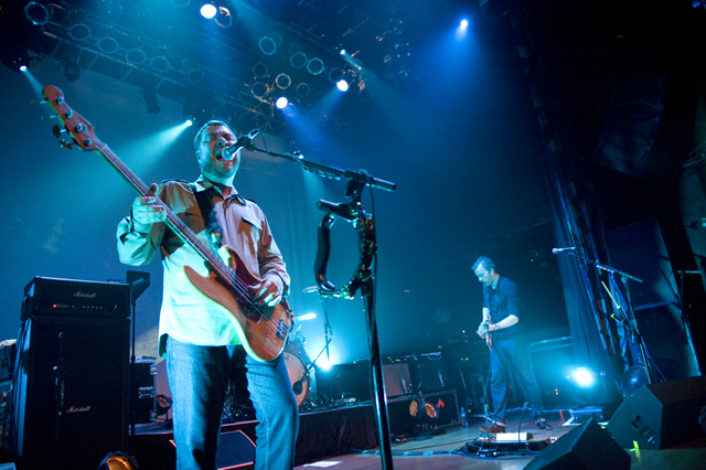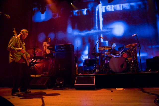 Last night Doves picked up where they left off in 2005, opening their US tour in the city that closed it last time through. Photographer Andrew Youssef was there, and he tells us that "Pounding" was restarted due to Jez missing his guitar part, but otherwise Doves were flawless. The set ended playfully, with "There Goes The Fear" melting into a percussive jam during which the band handed out tambourines and drumsticks to the crowd. Opening the show were Pop Noir, a pair of Orange County twins who have a thick Manchester influence. As Andrew notes, they were probably pretty psyched to open for Doves. Check the photo spread, and here's Doves' setlist and tour dates: