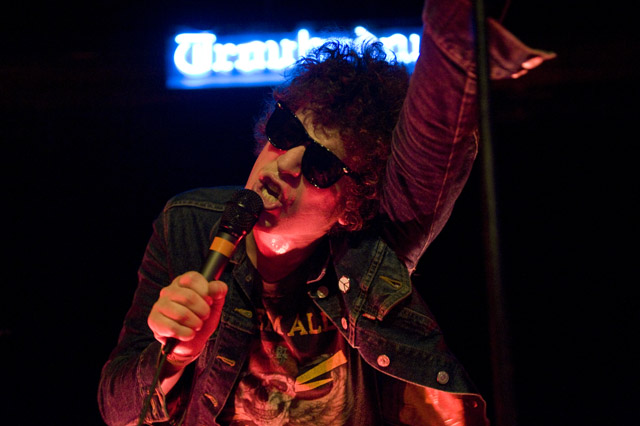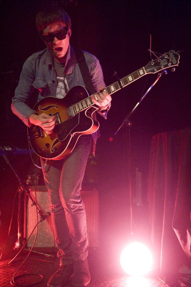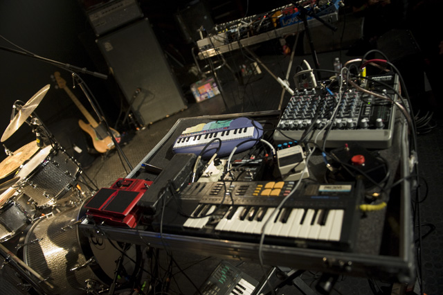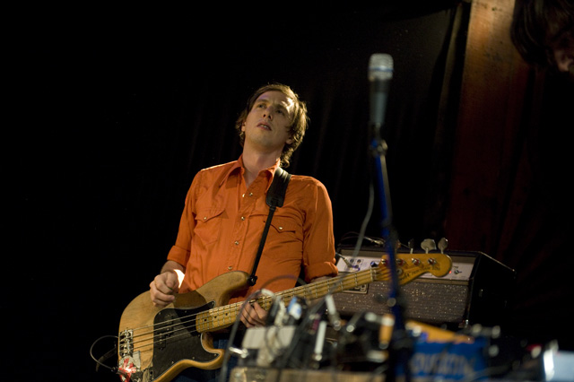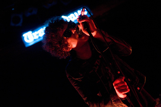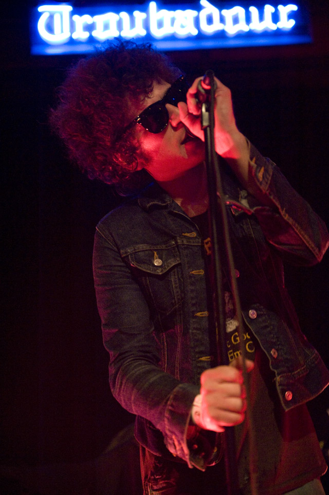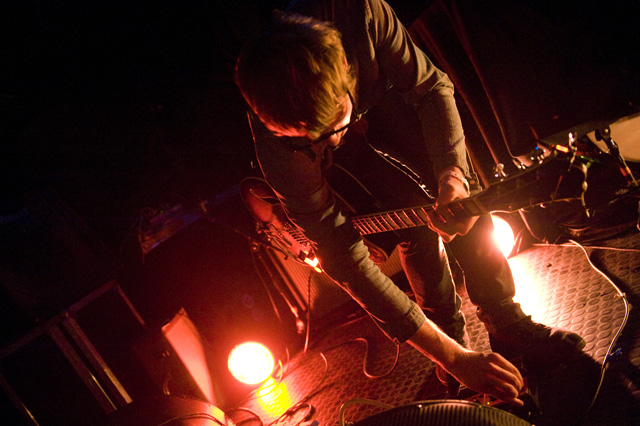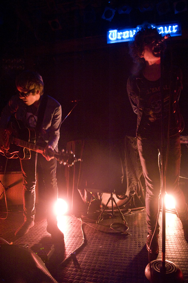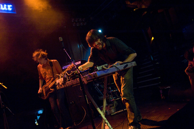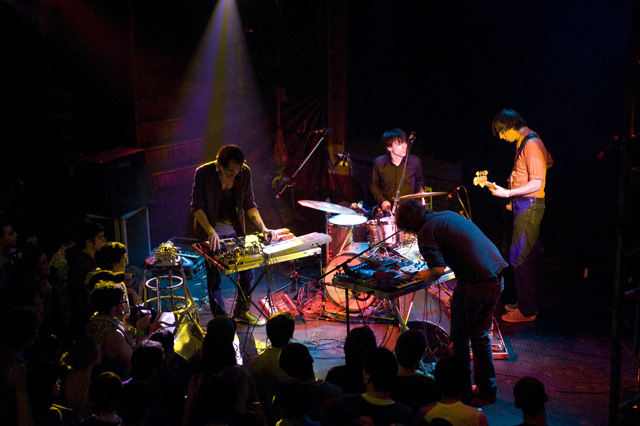 Saturday's double-bill at the Troubadour yielded a couple of fun facts. First, we learned that the night's opener, BTW Crocodiles, were being filmed for a profile on an upcoming episode of your favorite late night TV program, Last Call With Carson Daly. (Apparently the cameramen didn't care much for the fans they had to push past; it was probably mutual.) Also we learned that along with finding the sonic potential in just about any object and endorsing Chrysler automobiles, Holy Fuck love their Indian food. (They sat next to photographer Andrew Youssef at Taste Of India before the show.) Lots Of Love. In addition to that tandoori revelation, the band played new material. We'll dig that up if we can, for now enjoy yourself with Andrew's pics of the night.
