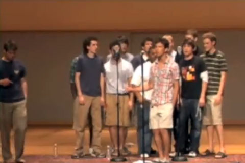 Even if Ben Folds snubbed them, after serving up instrument-free Vampire Weekend and Grizzly Bear the Carleton Singing Knights from Carleton College in Northfield, Minnesota show us that, once again, they have their finger on what's really (really) popular in indie rock at any given moment. (Though, hey, why no "My Girls"? Oh, right.) This time they hit us with Bitte Orca opener "Cannibal Resource." Main difference from DP's version? They have a beat box guy. Bigger than that? There are no girls. Because this is collegiate a cappella. (Just kidding. Nice job, guys.)
