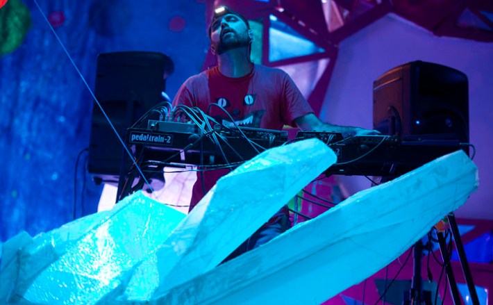 And then there was your headliner, Animal Collective, back for their second stint anchoring P4K fest. It was trippy. Their stage was mowed over with odd-shaped, illuminated crystalline fixtures, colorful hangings, and psychedelic lights. Seeing Deakin onstage was a pleasure. They looked somewhat more like a conventional rock band than they have over the past few years, from left to right with Avey on guitar, Geologist on his geologisms, Panda Bear behind drums, and Josh behind keys/guitars. The songs, their interstitial movements and segues, and many jams were unrecognizable and unforgivingly trippy (the large screens that had broadcasted shots from stage were given over entirely to matching, psilocybic visuals). If you ate mushrooms last night, you probably have some stories to tell. Tell them.