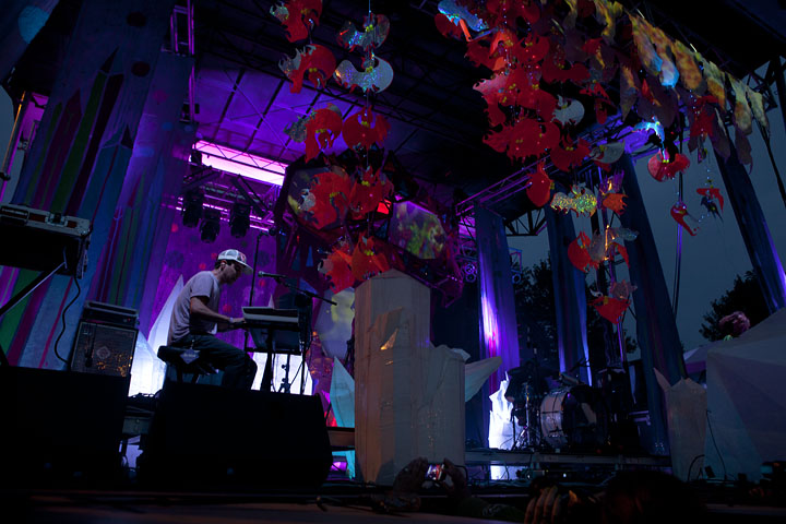 The beautiful thing about a festival like Pitchfork is the genre-spanning curating: The principal principle is a commitment to independent-minded music, and from that viewpoint Pitchfork succeeds in booking the year's best lineup for those whose RSS feeds are dominated by MP3 blogs and Google searches most frequently include the term ".rar". The difficulty comes when indie and intimate coincide, as they often do, and acts who are best situated for small spaces with minimal light get exposed under bright sun and across open fields. So the dank, eerie electronic sounds of smoke-and-lights electronic duo Gatekeeper getting pitched at 3:30PM, with no smoke and no lights, did the group no real favors. The beats of "Serpent" still slay in their own gut-punching way, but watching two men turn knobs for 40 minutes on a summer day can test patience.