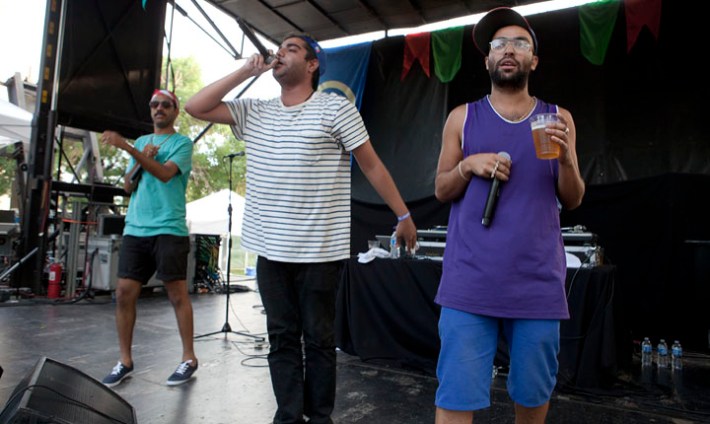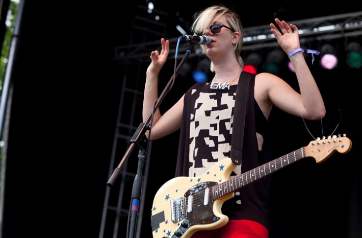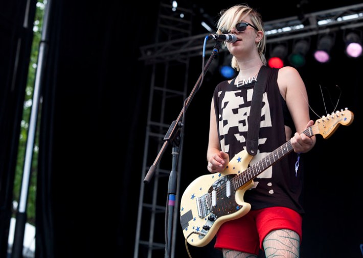 So it was a day owned by the lineup's more dynamic performers: tUnE-yArDs working her loops, ukulele, drums into the gale force globe-trotting funk and vocal acrobatics that always win crowds; Das Racist going hard on jokes, past mixtape highlights, and along with guest Danny Brown, showcasing material from their forthcoming LP Relax, certifying its first single "Michael Jackson" as an immediate sing-along banger. Guided By Voices competed with DR across the park, drawing the fest's older fans, or at least those who prefer Bud to bud. (I missed it because I have seen the classic lineup twice now and because Das Racist are a must, but can report the headline from GBV's set was Neko Case joining on "Echos Myron.")