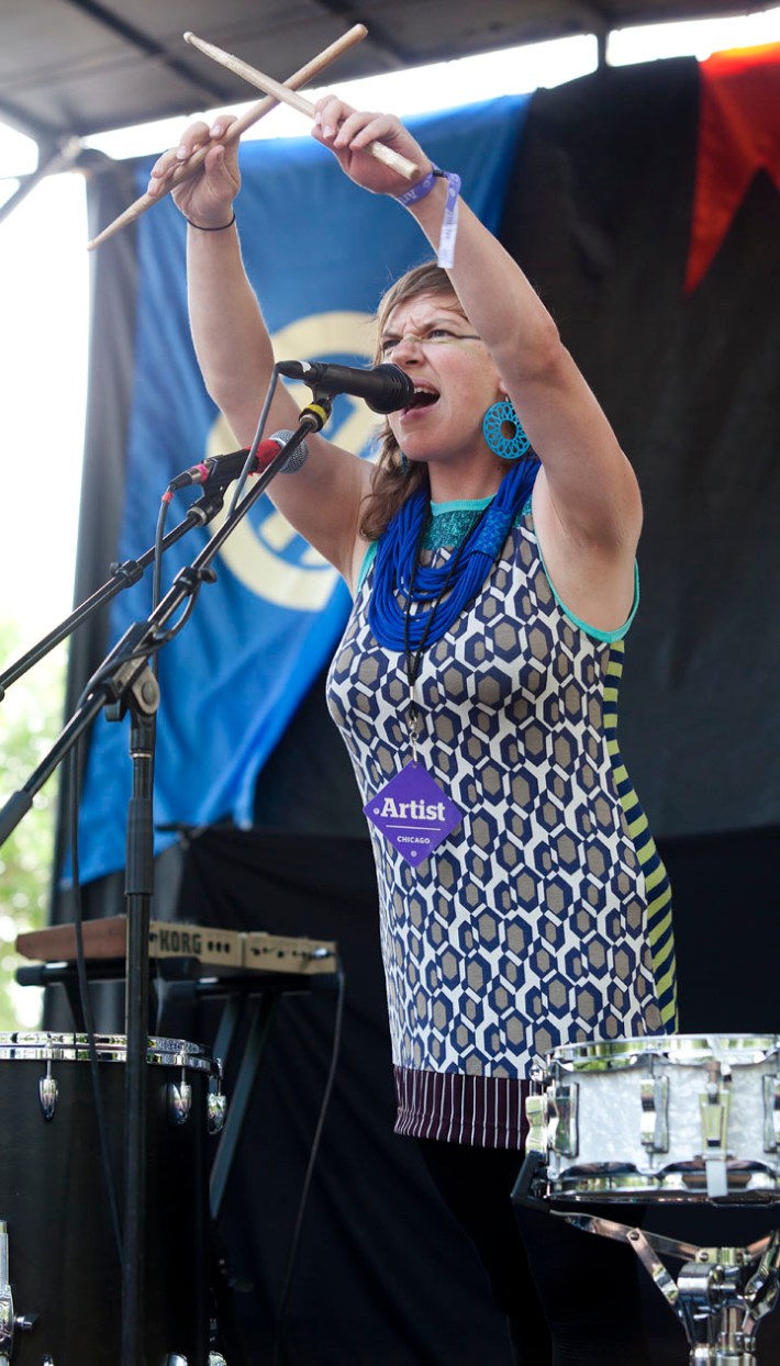 Elsewhere, Thurston Moore went acoustic ("Is this too loud?" he joked while strumming during soundcheck) with a harpist, EMA captured hearts with songs caked in broken, grungy torment and outstanding vocal performances, Battles piledrived through material from both their LPs with no Tyondai and a shirtless Stanier, James Blake dropped throbbing sub-bass that kids were still talking about hours later in line for the Smith Westerns/Das Racist show at Lincoln Hall later at night, and New Orleans' rapper Curren$y repped Chicago via MJ #23 Bulls jersey.