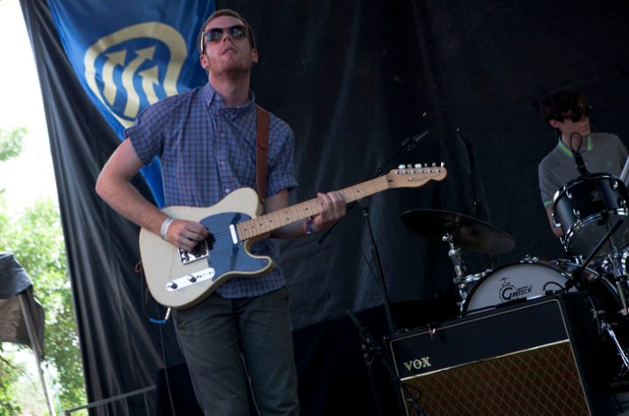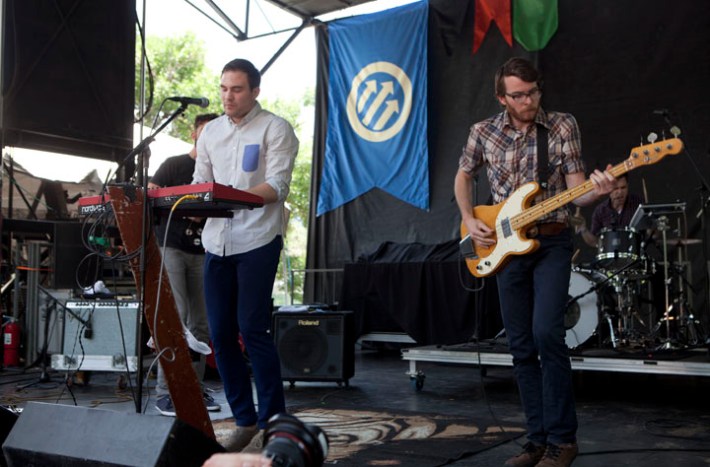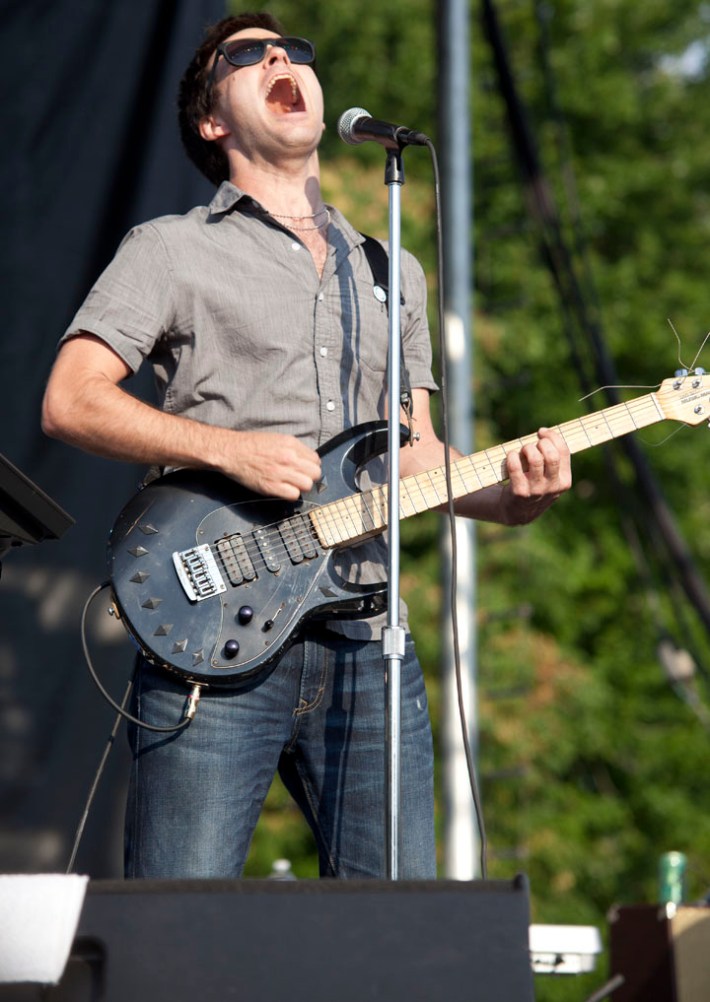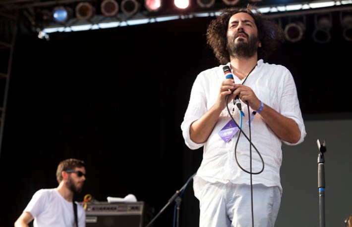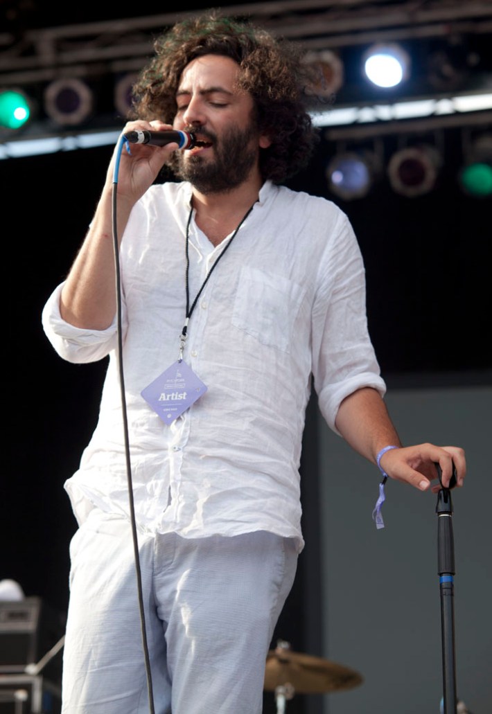 Sub Pop beard merchants Fleet Foxes played a day set on the same stage some years ago, with Robin Pecknold seated and a great many J Tillman jokes. Yesterday Robin stood while strumming and singing forcefully, symbolic of the pretty psychedelic folk group's always surprising, dynamic vitality onstage. It was the headliner the day, it's sun, it's mellowness, and it's weather, deserved. Check photos of the day's lineup above, by Mr. Graeme Flegenheimer.