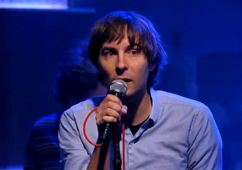After taking Brooklyn and Manhattan, Phoenix took off to the West coast to do Wolfgang Amadeus Phoenix standard "Lisztomania" on Jimmy Kimmel. It's a mostly spirited performance, Thomas Hedlund hitting the drums much harder than he needs to, to great effect. As the above thumb might suggest, though, Thomas Mars looks a tad more out of it than usual. He had an excuse: The guy's sick. In fact, the Frenchmen had to cancel this Saturday's performance at the Regency Ballroom in San Francisco because of it. Watch the show, then read Phoenix's sick note.