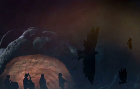 Bon Iver's Bonnaroo backers and proven Mark Mulcahy fans Elvis Perkins In Dearland are doing their own music in this clip for "Chains, Chains, Chains," the first from their self-titled collection. There was a live video for fellow Elvis Perkins In Dearland track "Shampoo," but that was a live video: This shadowy, foggy, cavernous, winged, captivating footage is clearly something else entirely. The spelunking was directed by Sean Pecknold, who's done aesthetically similar work for his brother's band Fleet Foxes.