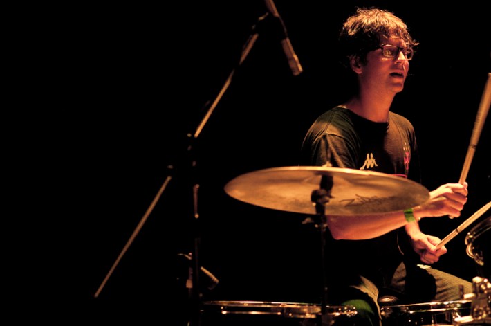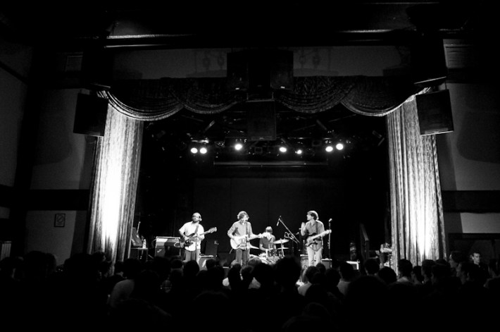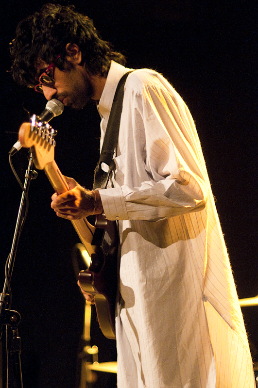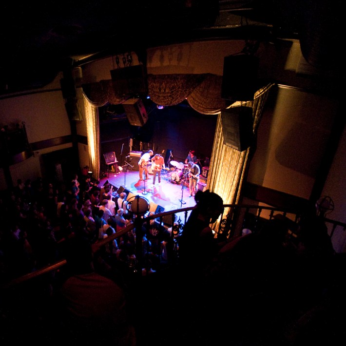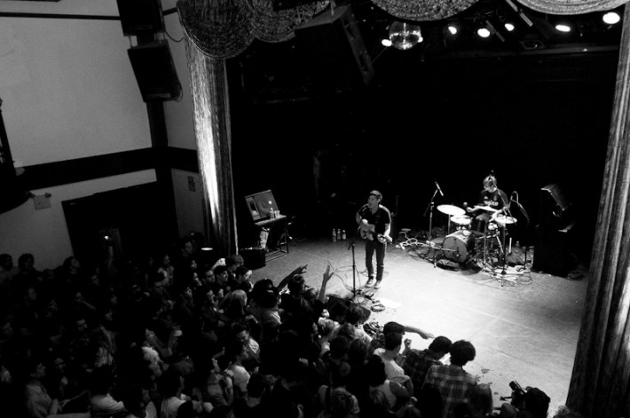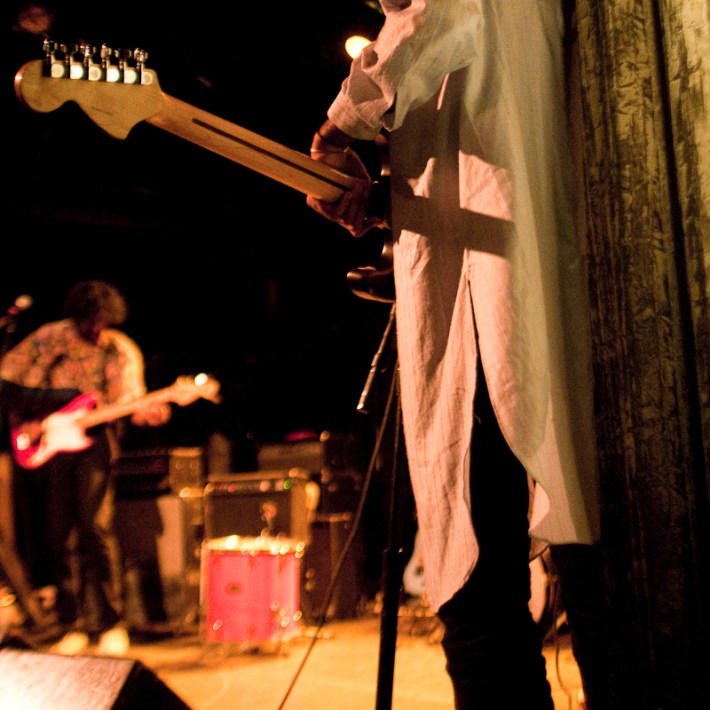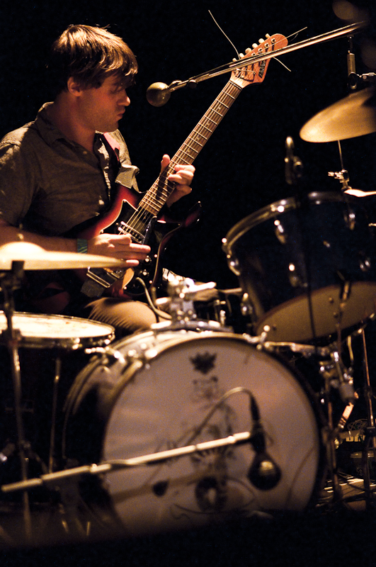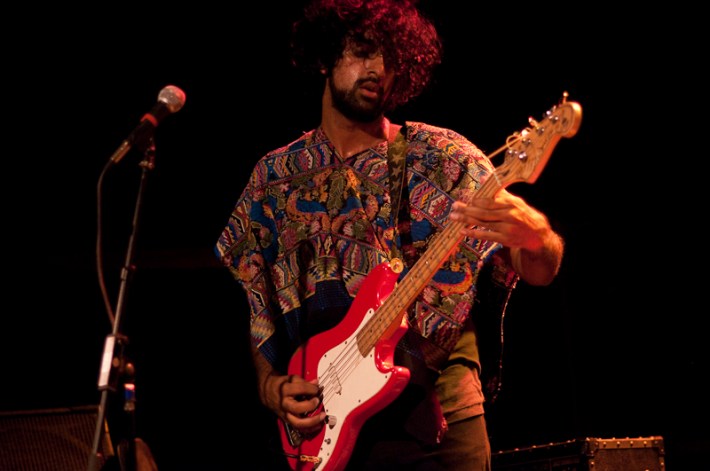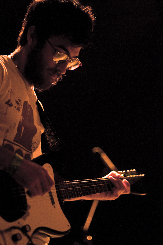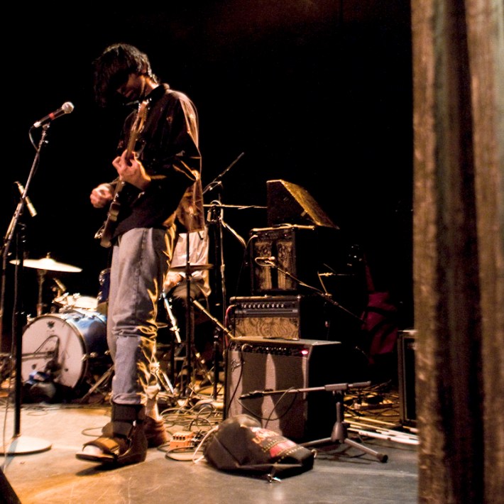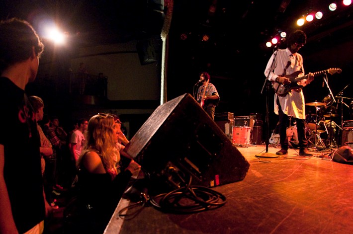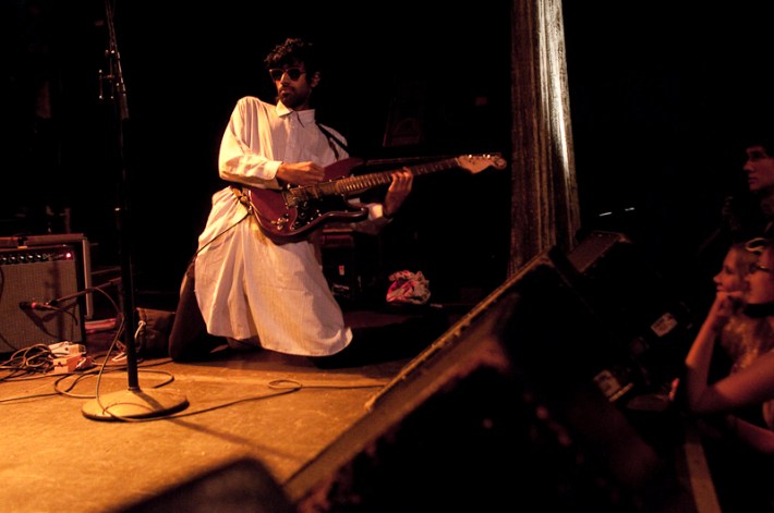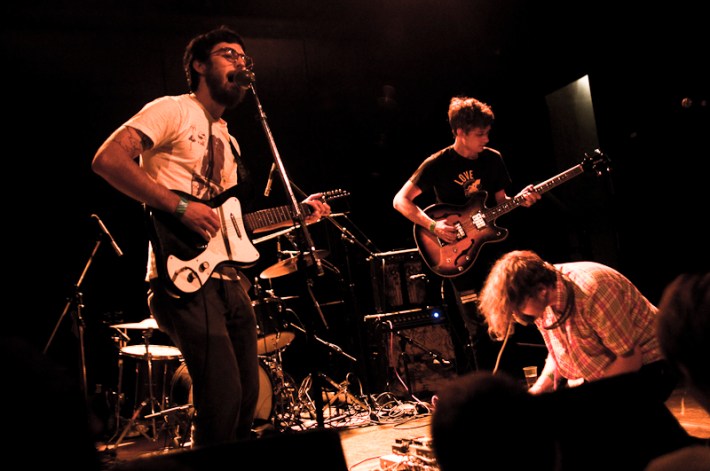Woods and Real Estate were phenomenal openers, lo-fi bands that aren't afraid to sculpt smart melodies or explore their chord progressions with noise and jams; our thoughts on them haven't changed since the July 4th fest. Both still excellent. (Worth noting, though: You can hear two new Woods songs -- "Get Back" and "Sunlit" -- at their MySpace.) The early opener was Popo, three Pakistani bros (literally) from Philly who have a 7" out on Mad Decent, a couple of MP3s on RCRD LBL, and a MySpace page that after a quick listen will bring to mind the Black Lips or the Germs or various other strains of garage punk stuff. Scott and I missed their set, but they'll be back. They trade in fuzz and reverb, after all.