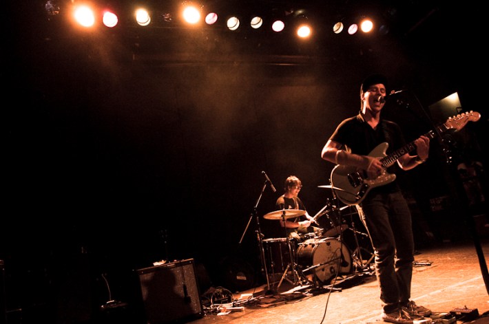 There was no mention of the meltdown because let's not blow things out of proportion, shall we, but the specter of it hung over the night. Nathan was making his rounds before the show and on the Delancey St. sidewalk conspicuously sporting a bottled water (onstage, too), and for someone who has a reputation for being snotty and sauced onstage, his sobriety was striking. Unnerving, even. I've never seen him like that. But the set was as taut and clean as a lo-fi punk show could be: No goofs or gaffes, lots of thanks and appreciative banter, and a relatively crisp set of the songs that catapulted Nathan into bloglines in the first place -- "Beach Demon," "Sun Opens My Eyes," "So Bored," most if not all of the goth-titled tunes, etc. And a new one, too. I'd offer lyrics but reverbed vocals aren't good for noting lyrics.