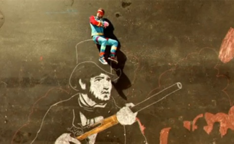 The newest Viva La Vida clip was directed by Shynola, an artist group that's worked with Beck ("E-Pro"), Blur ("Crazy Beat"), and Radiohead ("Pyramid Song"), among others. Here, they pulled out all the artistic stops. We've already seen Coldplay as classroom puppets. This time, Chris Martin takes the lead as a live-animated superhero who's shaken from his drab apartment to save a damsel in distress, only after battling giant squirrels, water creatures, and other obstacles.