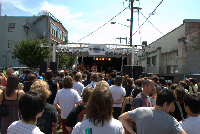 This past weekend, Seattle roped off a couple of blocks on Pike Street to host the Capitol Hill Block Party, inviting everyone from Sonic Youth to Micachu to the Jesus Lizard to help fill out a strong roster of artists. And Speaking of Yow's iconic band: 13 years ago the Jesus Lizard played the city and terrorized the crowd with his typical stage-diving/crowd-surfing madness, at which point he was banned from playing the city because Seattle authorities don't like stage-diving/crowd-surfing madness. Qui's played there since, but this was the Lizard's first Seattle appearance since being booted over a decade ago. And Yow sailed over the 10' photo pit gap between the stage and the crowd like five times. Obviously. In addition to the relative heavy hitters at the festival's official stages, some local talent handpicked by KEXP played sets in the the Caffe Vita coffee bean storage room. Photographer Josh Lovseth hopped between the stages, the coffee bean rooms, and the hot dog dunk tanks for us and brings back this slate of shots.