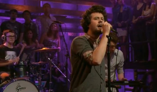 The Massachusetts synth-pop outfit has taken its Manners pretty much everywhere this year -- in the club, on a boat, etc. -- but until last night a network television performance eluded them. Jimmy Fallon's crew continues to pick up the slack left by Conan's slightly (com)modified music guest booking policy by giving Passion Pit their big shot on TV. Just as well, they're not quite ready for the Tonight Show lights, but they don't exactly sound like a band that's only been around for like a year and change, either. Also it's rare to see Michael Angelakos do his helium vocals without a bevy of keyboards in front of him, so feel free to take the chance and rate his lead-man/stage-roaming presence if you want.