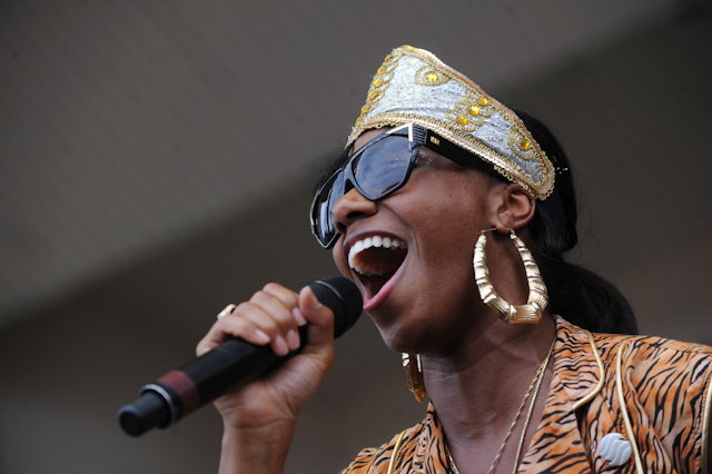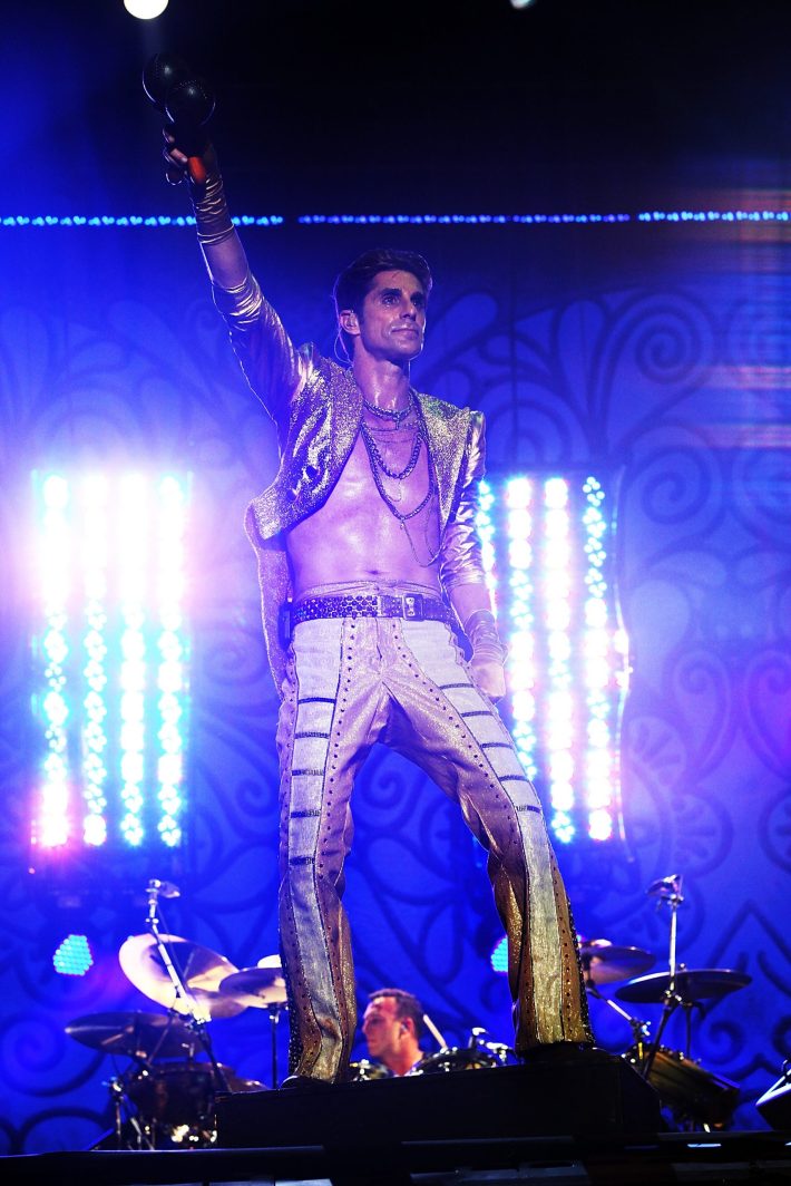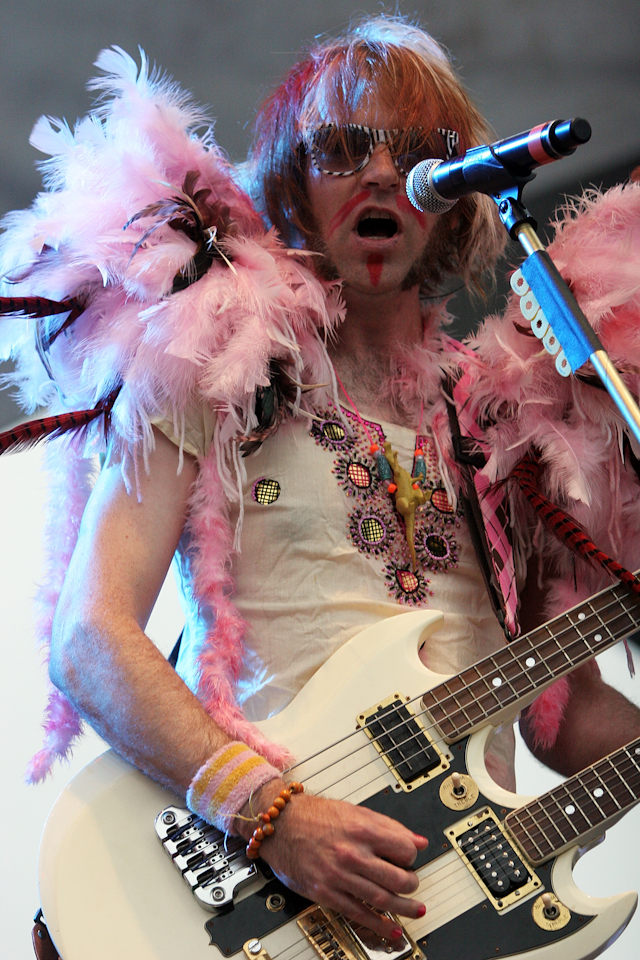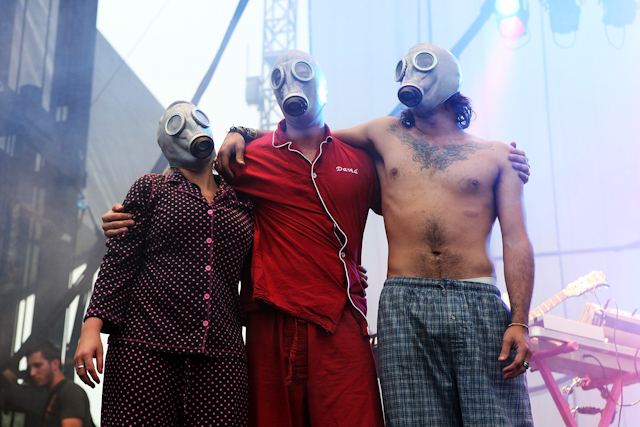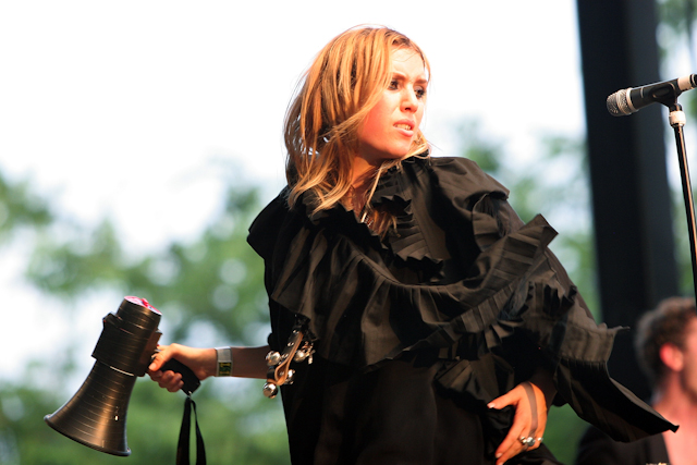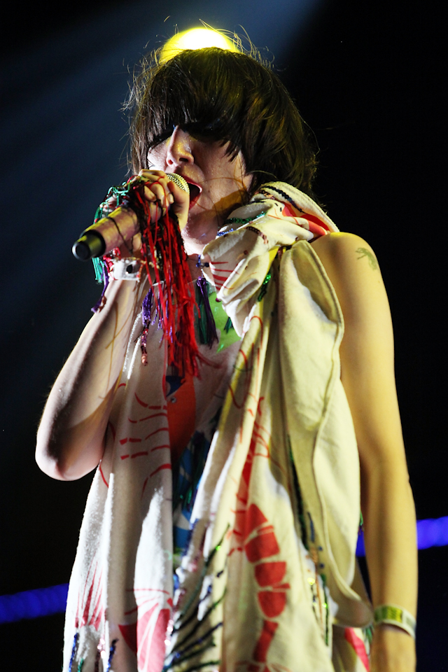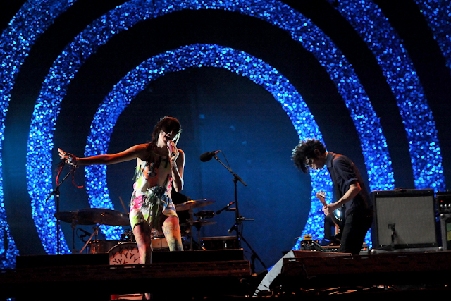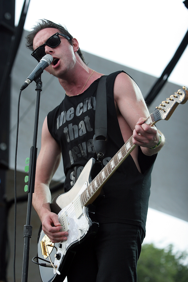 Well OK, let's not forget Depeche Mode. The rain miraculously stopped Friday night in time for their headliner, and their memorable set was somewhat akin to Jane's: for 90 minutes we were on a (post-Music For The Masses) nostalgia trip and in the hands of bona fide rock stars who knew how to address a crowd that size almost too well. But even as Dave Gahan has his stage persona perfectly calibrated like he's a charismatic scientist, the dude can wrap you in moments of sheer emotion and goosebumps. And while it was, again, unfortunate to be at a festival Beastie Boys were forced to cancel, giving Karen O and Yeah Yeah Yeahs a chance to occupy the anchor slot next to titans like Perry and Gahan seemed perfectly fitting, and right on time: Karen's one of our generation's few true rock stars -- a relic of the past, in a way -- and her compelling mix of vulnerable pathos and new wave banshee were perfectly framed by the Chicago skyline and the mainstage's sweep. She's not quite there yet -- she did forget the words to "Maps," after all -- but as the adoring crowd that pick up the lyrical slack showed, she'll pack 'em tight and close even as she sands down the edges.