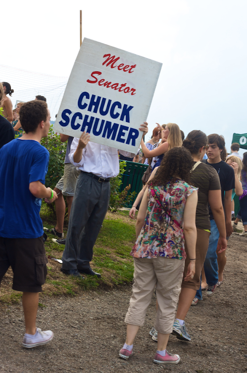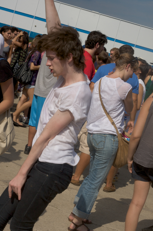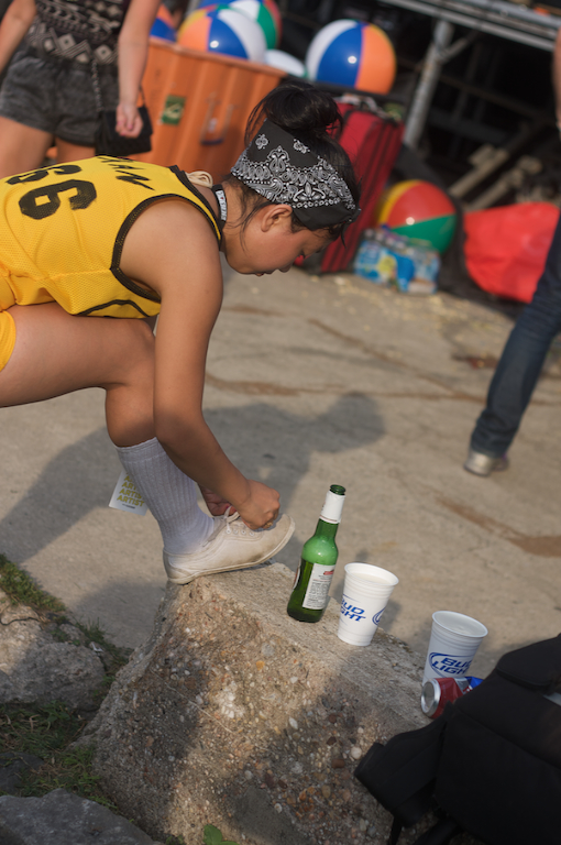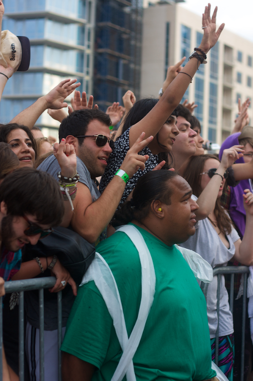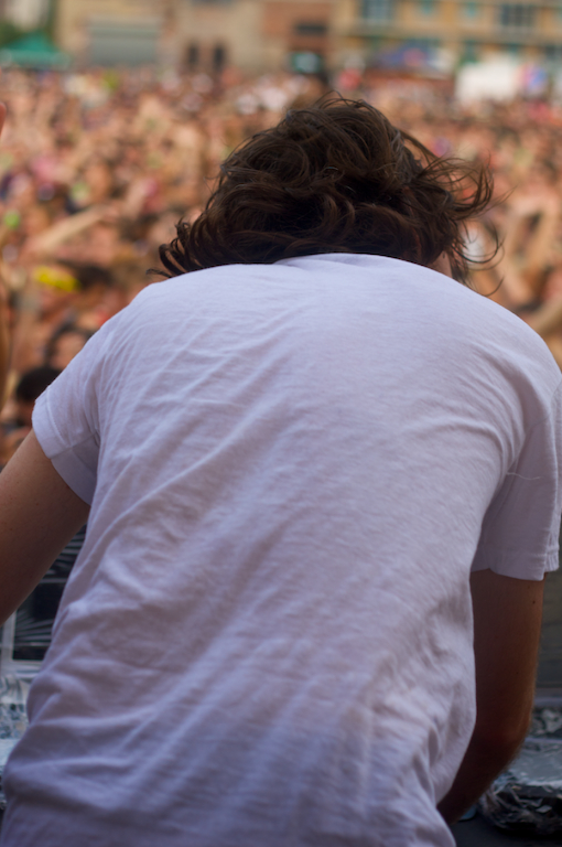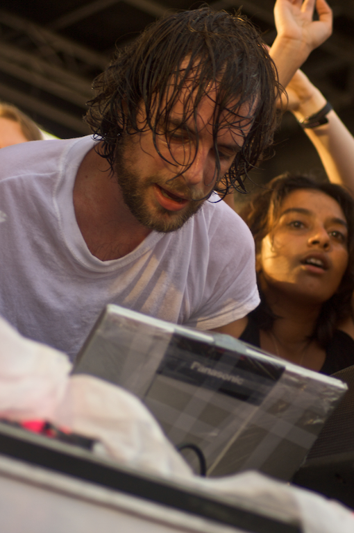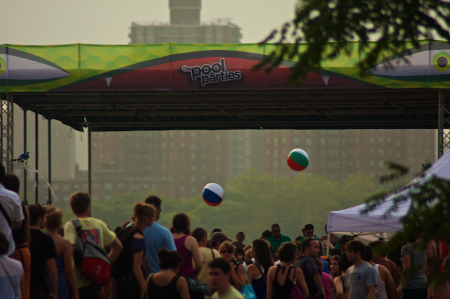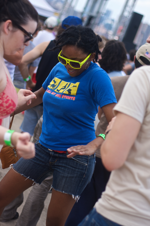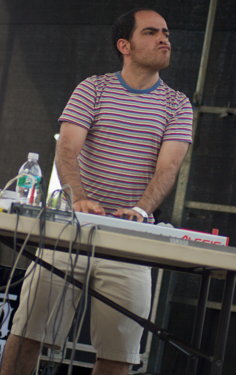 Yesterday there was a free outdoor Girl Talk show in Williamsburg, so naturally it was a nice, quietly controlled time where everyone wore an appropriate amount of clothing. Just describing that show sounds like the punchline to some unimaginative hipster-hating zinger, but there it was, and it was real, and it was about as insane a scene as legally permissible on state property. To JellyNYC's credit, the lineup was perfectly picked and paired: Max Tundra's Twitter jokes, prodigal keyboard/synth-pop, and songs about finding love via social networking sites warmed a crowd that seemed only to half-know him, and Wiz Khalifa's party-popping hip hop served a smart middle course to prep for the hybrid hooks Girl Talk was loading onto his laptop (let alone that Wiz's "Say Yeah" is one of the many samples on Feed The Animals' "Don't Stop").