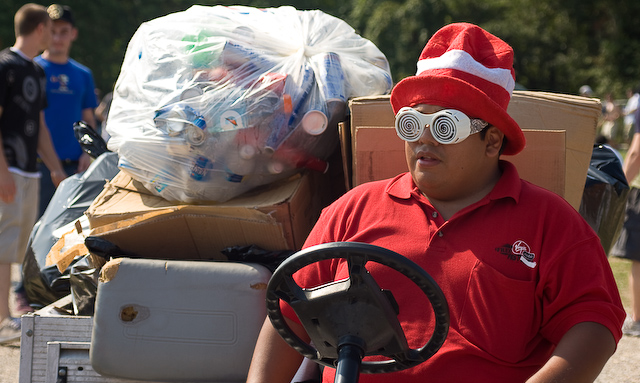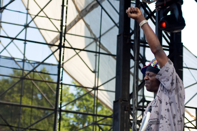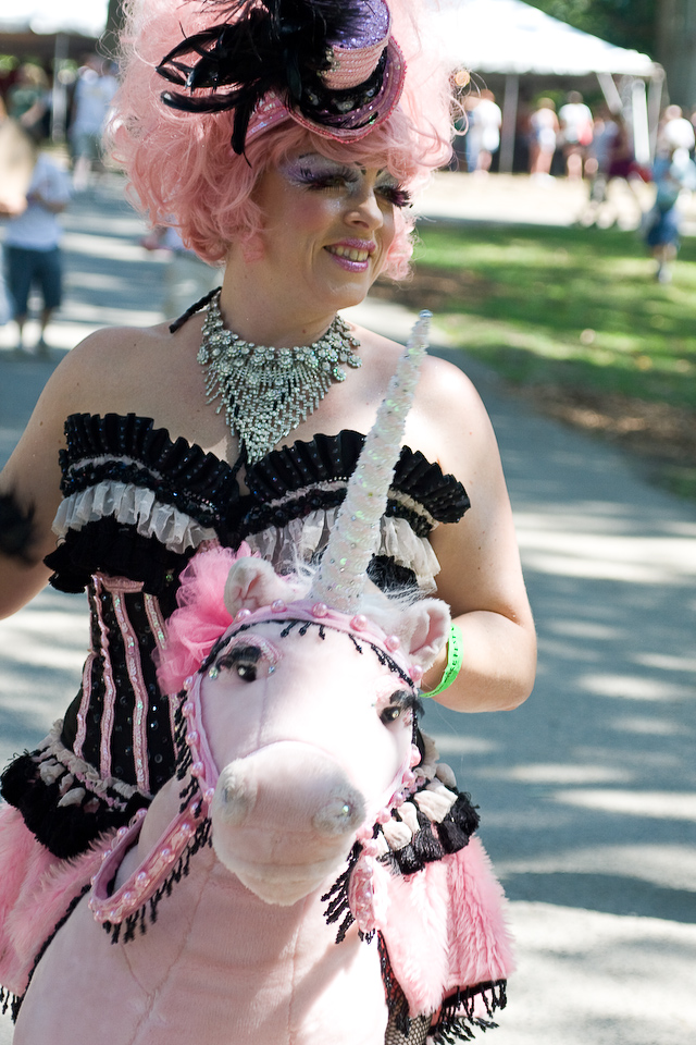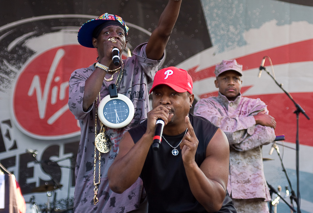Indeed, this year's Virgin Mobile Festival was totally free, and Richard Branson's attempt to "put a smile on people's faces" totally worked. Aside from those grumbling about the long lines for admission, because everybody loves complaining about something. The day featured sets from a reunited Blink-182, Weezer, Wale, and made for some fantastic scheduling when Chuck D and Flavor Flav's set gave way to the National's. (Said Berninger: "We do the same sort of thing as Public Enemy.") Being free meant abundant branding at every turn, but there were attractions to divert attention from corporate slogans by way of vaudevillian psychics, street performers, and the traveling hipster roadshow that is a Girl Talk set. Here are some sights of the scene at Merriweather Post Pavilion, most by Graeme Fleigenheimer.