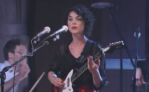 Actor has its share of tracks that could work in a late night context, but you can't blame Annie for returning to the song that was so strong on Letterman that Ted Leo demanded we post it. (Also he demanded that because he was scared he would fall asleep. Anyway.) It was strong, and it's a smart showcase for what Annie brings when in her element live, with its off-beat vocal melody, an airy passage where she can unleash those eyes on the crowd, weird guitar chord inversions, and that "H-E-L-P" chorus which, with its syncopated arpeggios and machine gun sax, strikes like a tweaked-out/blog-approved Dave Matthews Band. (Relax, those guys could play, and yes they did sound like that.) The night after Letterman I saw her play a show at Bell House where, for my first time, I saw her have an entire crowd eating out of her hand start to finish. So Annie plus singers/horns/band making swift work of "Marrow" on Kimmel last night reminded me of all that, and that's a good thing.