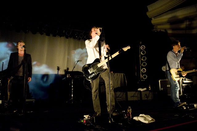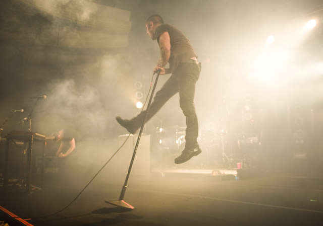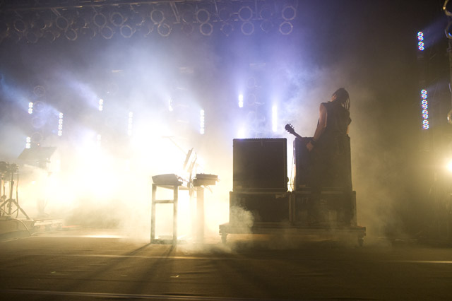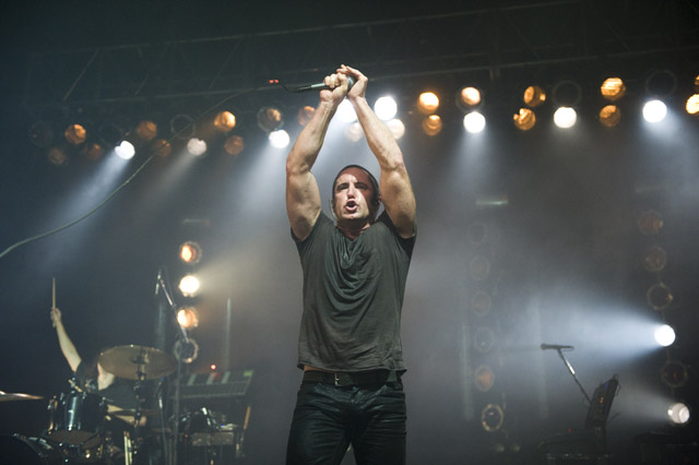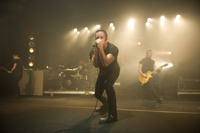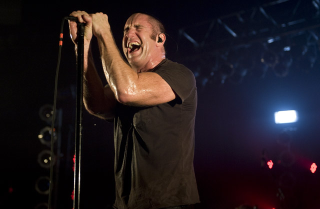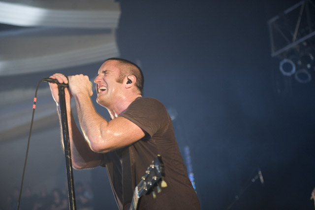 Bad news for ticketholding NIN fans: Trent's sick, and tonight's show at Henry Fonda has been canceled. No big deal, they can always just come back and ... oh right. Sorry, Los Angeles. The good news is, overall, this NIN Wave Goodbye tour has been so spectacular that one can only wonder how Reznor can outdo it with the NIN Wave Goodbye (For Real) tour in five years. The NYC shows were in places absurdly small (Bowery), and even the (relatively) larger shows brought something special, like Terminal 5's Peter Murphy guest spot and Webster Hall's The Downward Spiral complete retellings. Well last night the Hollywood Palladium got their own track-for-track Downward Spiral setlist, followed by a setlist of harder edged NIN alongside rarity "Lights In The Sky." (Also a rarity: Gary Numan joining on "Metal" and "CARS"). Mew opened, as did Queen Kwong.