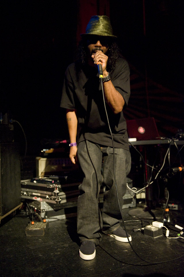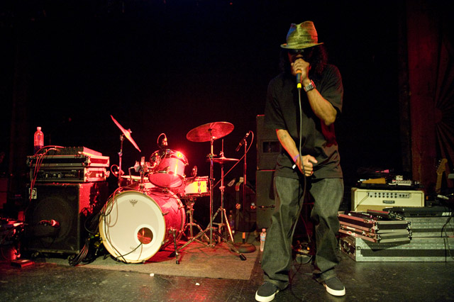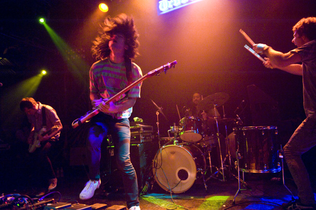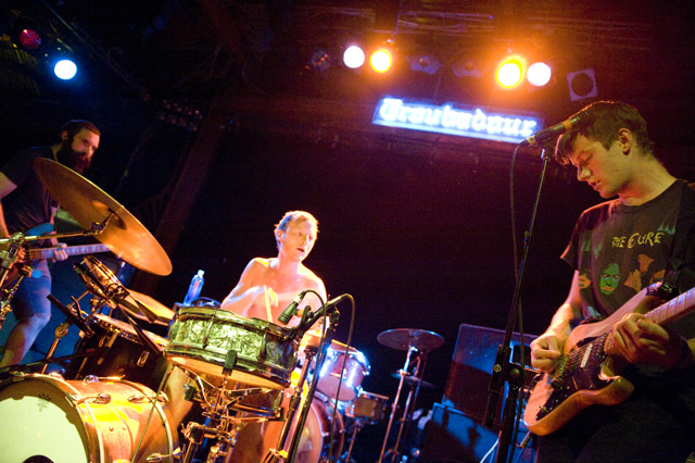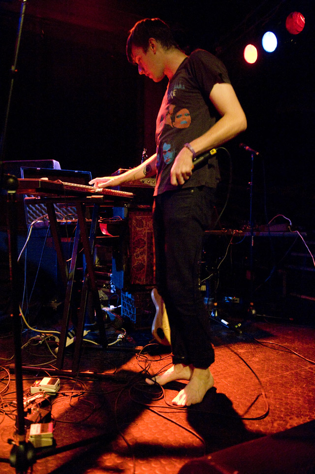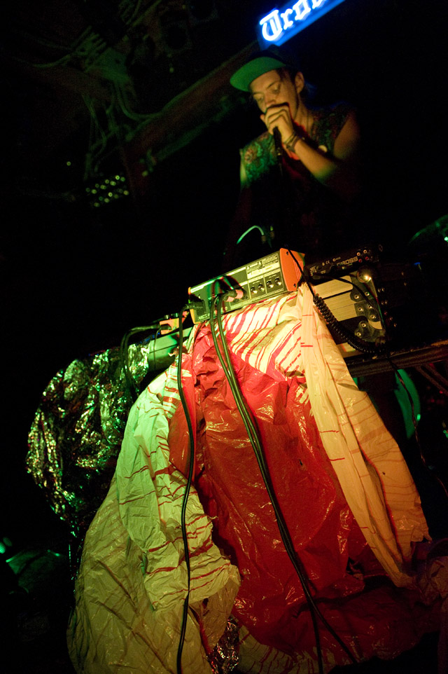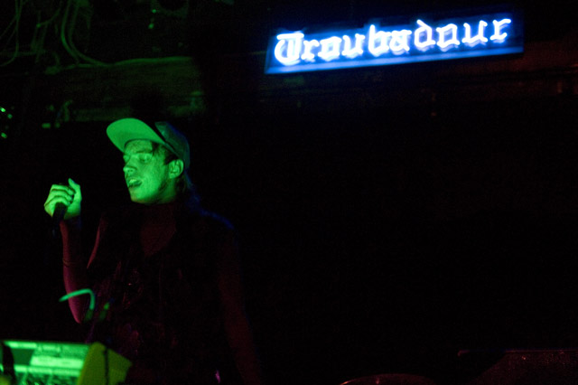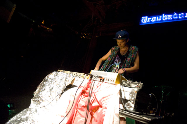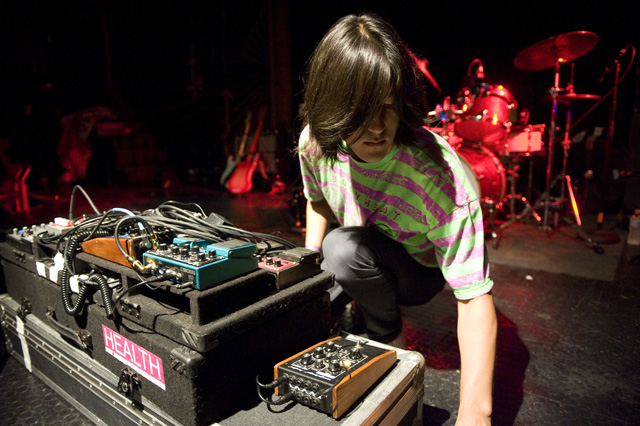 HEALTH and Pictureplane make for logical tour partners. They're Lovepump labelmates, and bands to watch, and they both find creative ways to fuck with their love for making people dance. (Or at least, move.) They kicked off a month of shows together at the Troubadour in Los Angeles the other night, with Dam Funk and Mi Ami as the early openers. Pro tip: This will be a good tour to see. HEALTH always rule live, but after their time opening up Nine Inch Nails' Wave Goodbye, they might have learned a new trick or two. In fact, just the night before this Troubadour show they joined NIN, Jane's Addiction's Eric Avery, and Gary Numan on a cover of Gang Of Four's "Anthrax" at the Henry Fonda. So they learned that new trick at least. Here's video of that (hello, big tag set), along with the 9/9/09 HEALTH/Pictureplane pictures by Andrew Youssef.