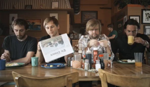 Seattle BTW Throw Me The Statue offer a playful video for the bouncy, Built To Spill-y Creaturesque track "Hi-Fi Goon." In it, the guys skip out on breakfast to catch an escaped elephant, stopping by a junk shop for the proper safari gear, learning some martial arts moves, and following hunks o' dung and other markers around town. They end up with snaring different prey, which ultimately kick-starts another hunt. The clip was directed by Jason Argyropoulos at Tree Filmworks.