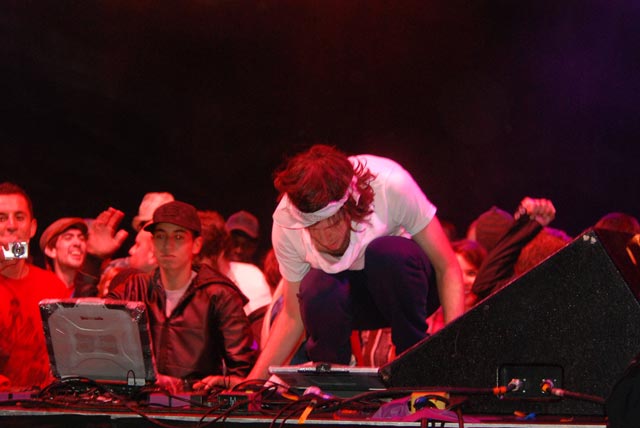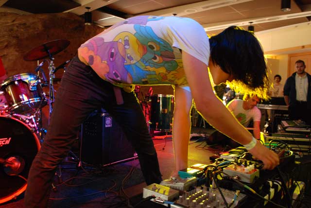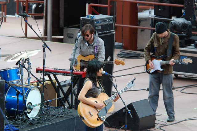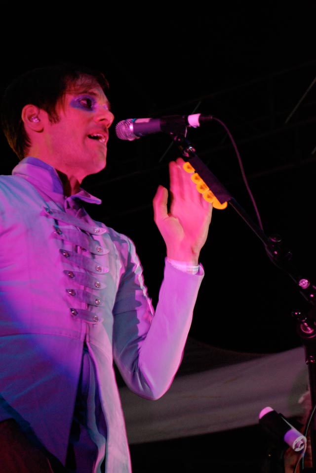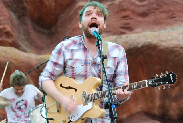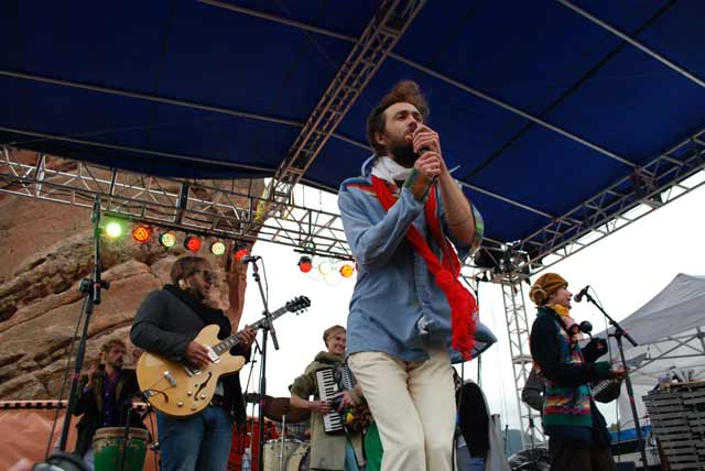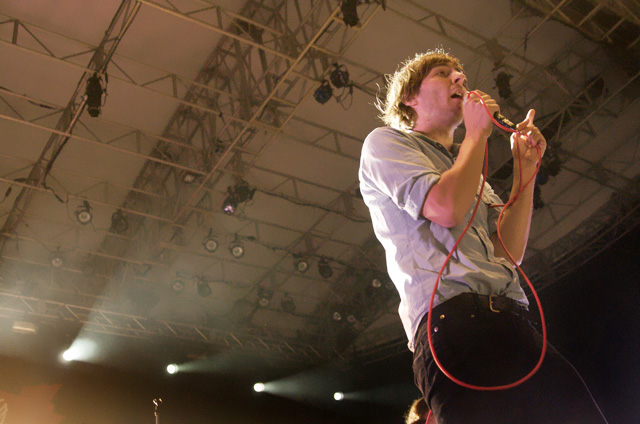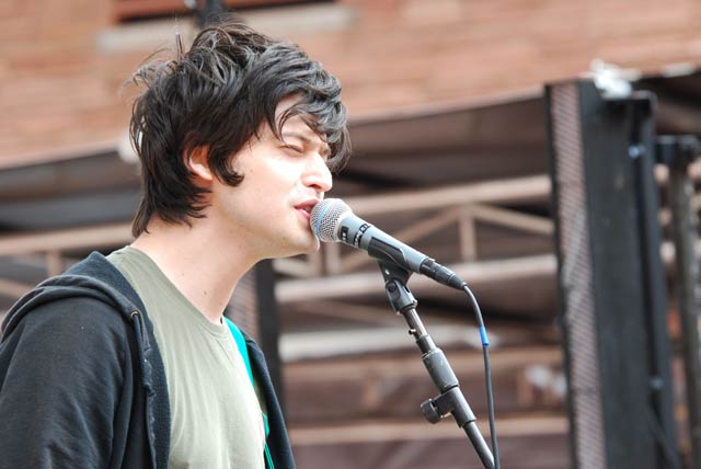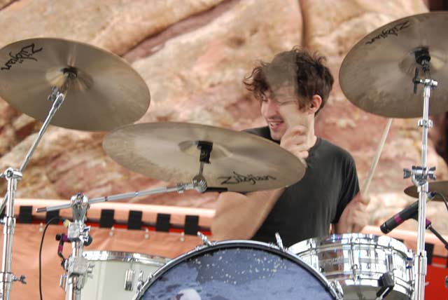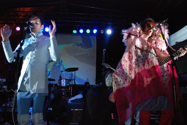 While we were rocking the Catskills, enjoying what Wayne Coyne said was "the greatest collection of underground music ever assembled," dozens of other great indie bands (and a few hip-hop luminaries) put on a much larger mountain festival in Morrison, Colorado. In its third year Monolith delivered rain from the get-go, but that only served to boost attendance at the smaller indoor stages for performances by Cymbals Eat Guitars, the Antlers, and HEALTH. Neon Indian was a draw too; it was the Alan Palomo project's third ever live show, which explains why his band needed lyric sheets. MSTRKRFT cancelled due to illness, so Phoenix took their spot, upgrading to the main Esurance Music Stage, which also hosted headliners Yeah Yeah Yeahs and Mars Volta. Photographer David Hutchinson took it all in and delivered these pics.