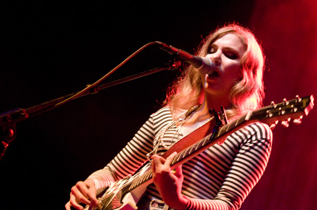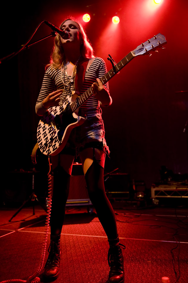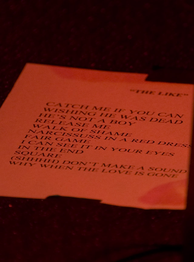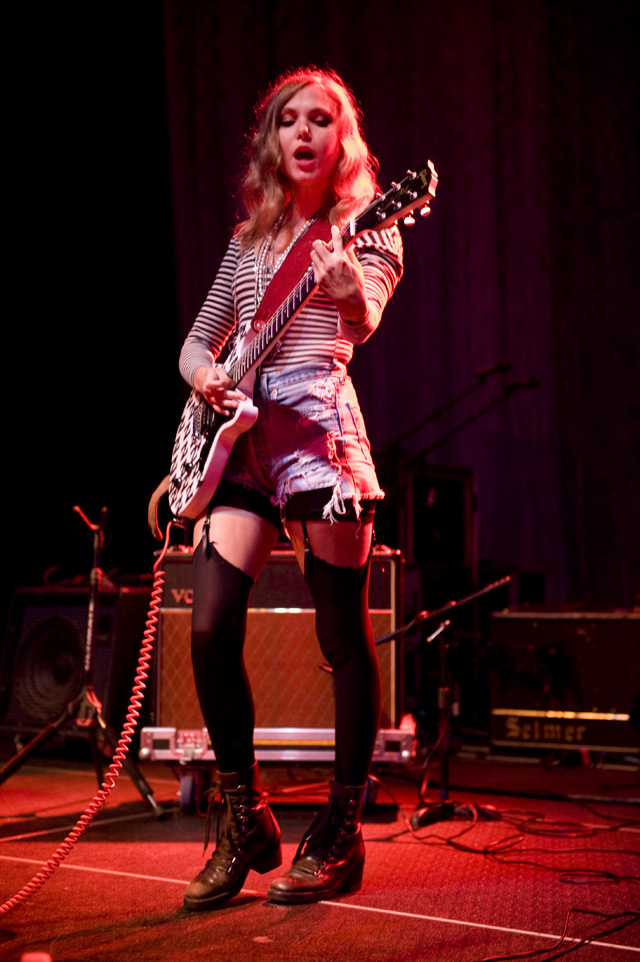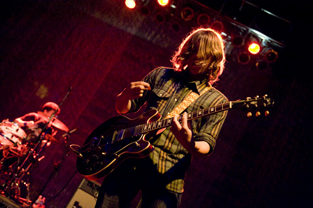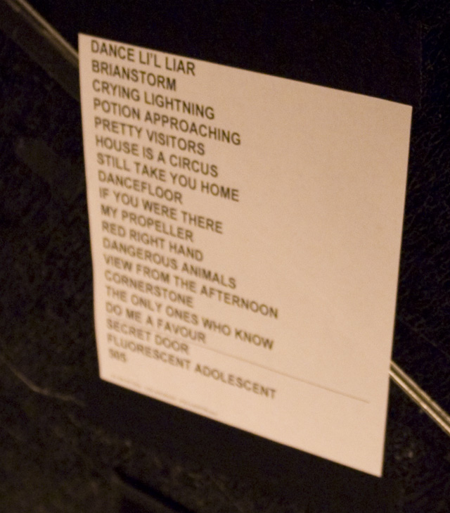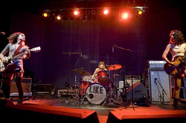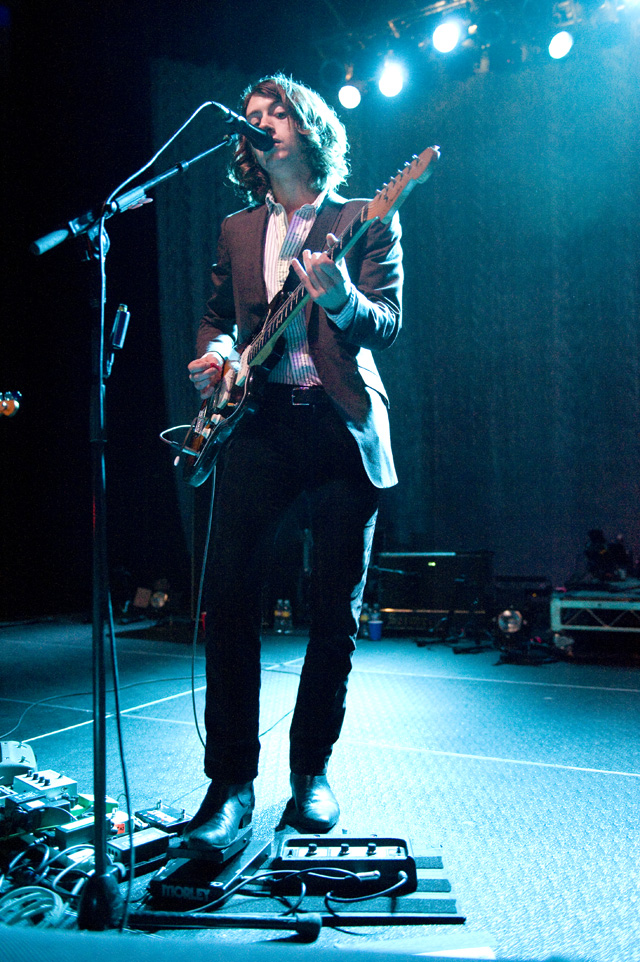 Alex Turner's hair has been gracing some large and brightly lit stages this summer in support of their darker turn on Humbug -- including their coming out party as a legitimate US festival band with one of Lollapalooza's standout sets -- so it's nice to see what they can do in a smaller auditorium these days. What they couldn't do is cajole their new album's producer to guest with them onstage in his hometown, but apparently Homme-boy and honorary fourth Them Crooked Vulture Alain Johannes was in attendance to lend moral support. On hand were the Like (opening the night a new lineup) and Andrew Youssef (delivering this set of pics).