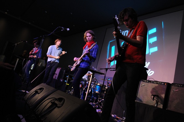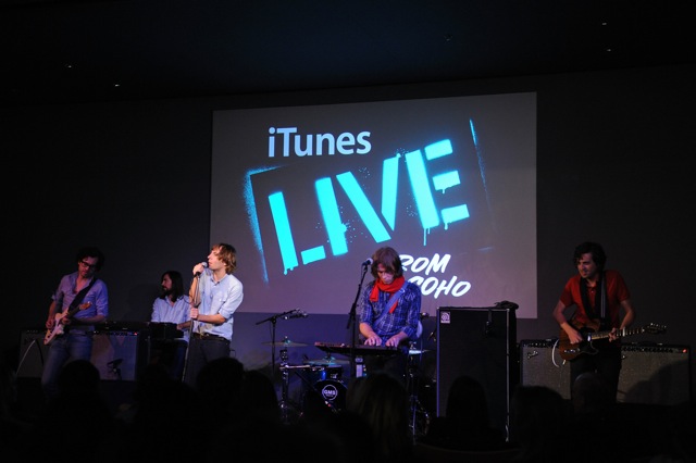 The French '80s revivalists are making the most of their time in NYC. Again. Last time it was shows everywhere from MHOW to T5 and camera calls for Alexa Chung and David Letterman. This week's jaunt sees them spend two very soldout nights at Central Park Summerstage with Passion Pit (tonight and tomorrow), but not before a busy Thursday that saw the suave Cadillac spokesmen perform a session at the Apple Store SoHo, and then "Listzomania" at 30 Rock minutes later. One of them didn't even have time to take off his scarf in transit.