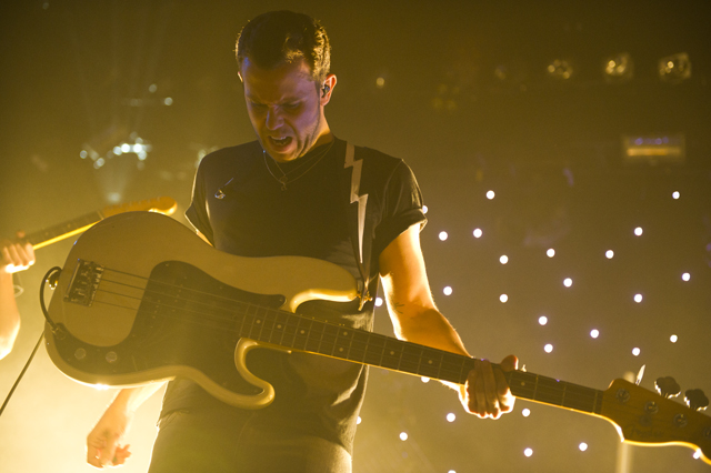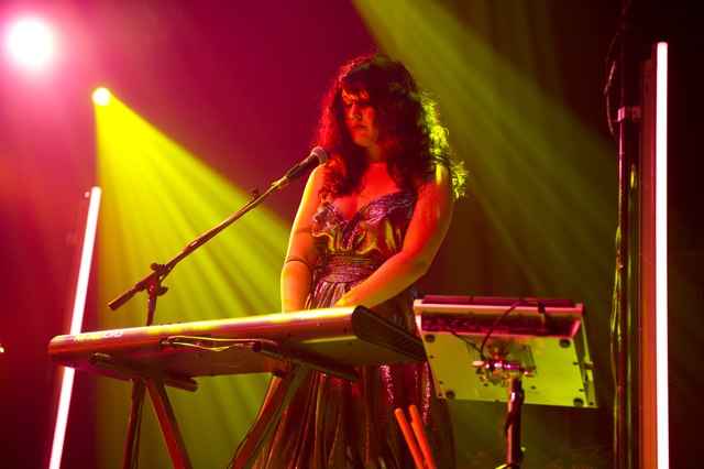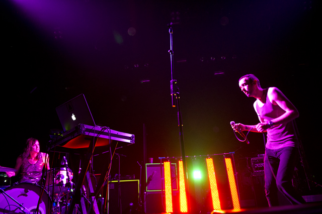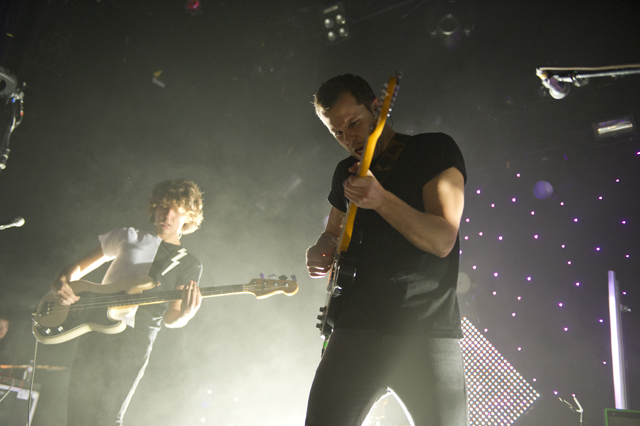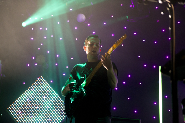 M83 resumed their tour behind their sprawling double album Hurry Up, We're Dreaming by easily selling out two nights at Club Nokia in Los Angeles prior to their departure to Europe for a few months. M83 will return stateside in April for a coveted top slot at Coachella followed by a slew of dates across America. Former M83 touring guitarist and Mellodrone frontman Jonathan Bates opened the show with his electronic pulsating project Big Black Delta propelled by the double drumming assault of Amy Wood and Mahsa Zargaran. M83 setlist after the jump and check out the pictures above.