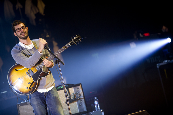 Instead of selling out one night at a large venue, Popeye pals Wilco sold out three nights at medium sized venues scattered across Los Angeles with their second stop being the Wiltern. Jeff Tweedy and company endeared their fans with an expansive 24 song set with five cuts from the classic Yankee Hotel Foxtrot. White Denim by way of Austin provided support. Check out the pics above and the setlist after the jump.