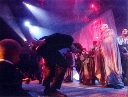 Jackson was in the middle of performing "Earth Song" while surrounded by kids and a rabbi at the UK's Grammy equivalent when the Pulp frontman, evidently disgusted with all the pomp, rushed the stage to point his ass at Jackson and to show off his belly-button for no reason, wearing an expression of perfect British blankness. As big-time stage-invasions go, this tops even the notorious Bob Dylan/Soy Bomb moment at the 1998 Grammys.