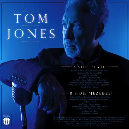 Jack White and Tom Jones -- hmm, that is unusual -- will release a single through White's Third Man records this spring which features a cover of Howlin' Wolf's "Evil" and a reworked version of Jones' own "Jezebel" (had we known about this a little earlier, it totally could have cracked the 13 Best Jack White Collaborations list). BBC Radio premiered "Evil" yesterday and it's available to stream below.