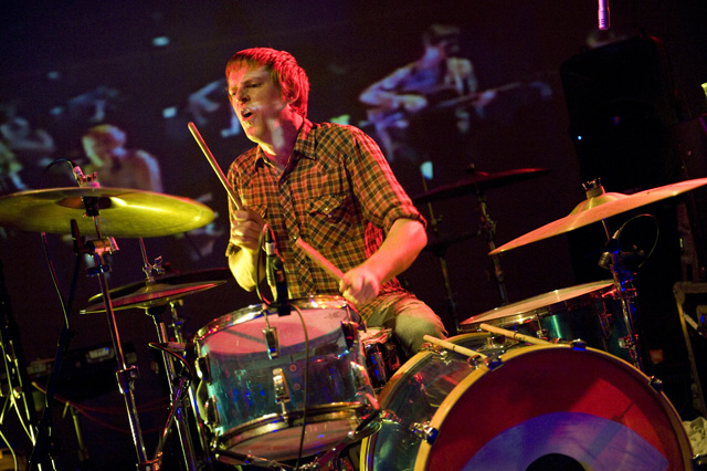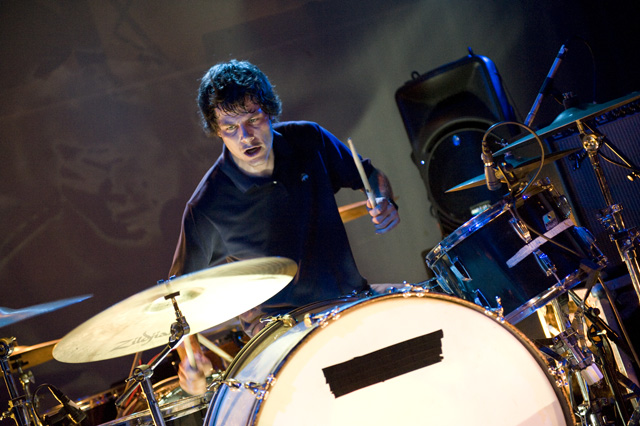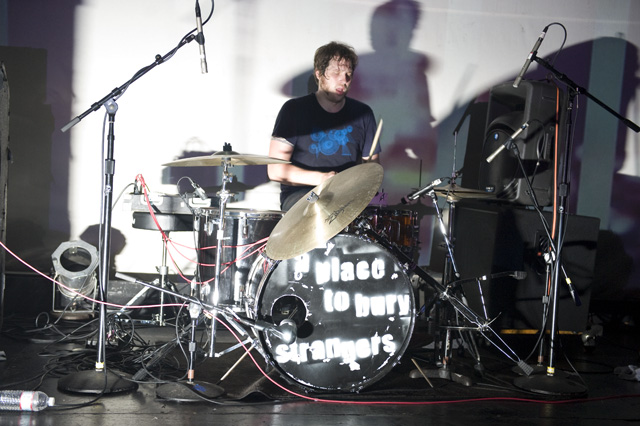 Volume-knob maximalists A Place To Bury Strangers are on the road supporting their Exploding Head LP. Friday night's stop took them to the Echoplex in Los Angeles with openers All The Saints and local psych fuzz rockers Darker My Love. Andew Youssef battled strobe lights and hearing damage (with the APlace To Bury Strangers branded earplugs, of course) to bring back this set of shots.