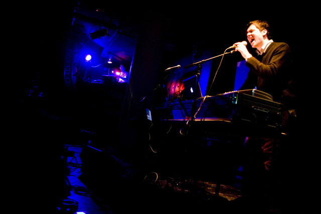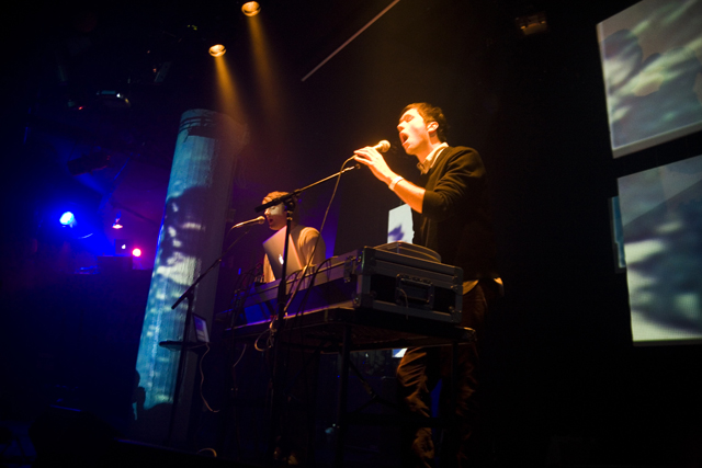 CMJ starts in earnest today, but for Georgia-via-South Carolina multi-instrumentalist and '80s sampler Ernest Greene it started and ended yesterday, with his Washed Out project's second solo show ever, and first in NYC. We were saving our legs for the big CMJ kickoff at the Studio @ Webster tonight, but Santiago Felipe brought back these shots of Greene and opener, Tanlines/Professor Murder spinoff Restless People.