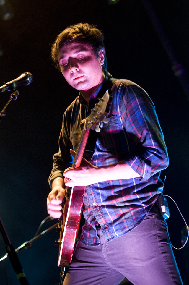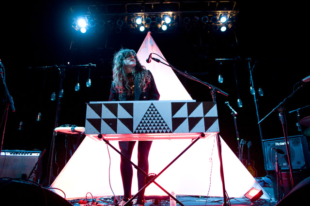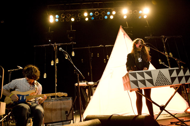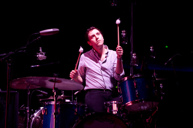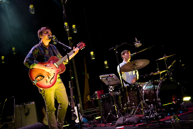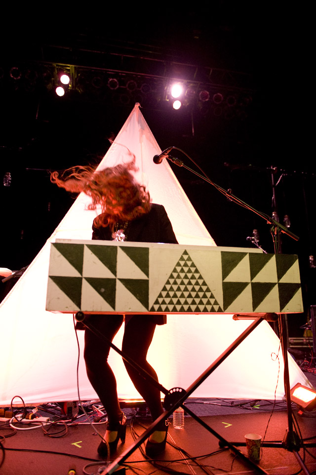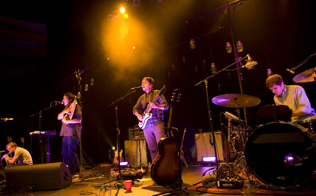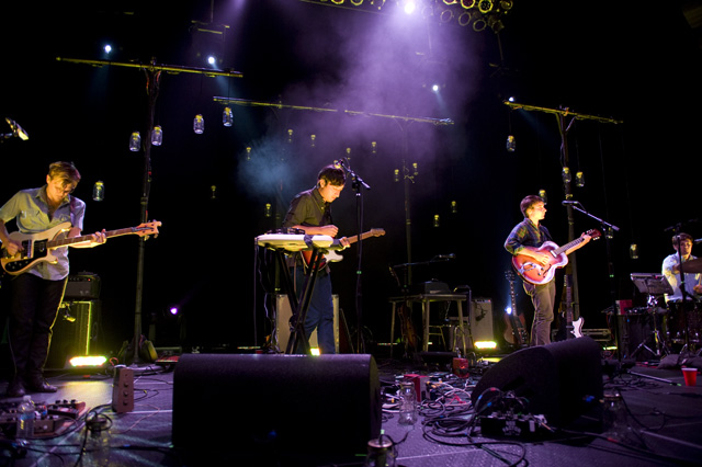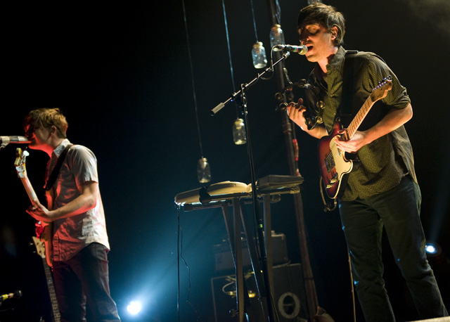 Tonight Grizzly Bear wrap up their five-month US tour with a sold-out Solana Beach gig before heading to Europe with St. Vincent. Yesterday we showed you a few pics from their Treasure Island set; today we've got a gallery from last night's party, a hometown gig for Dan Rossen. Openers Beach House explained that they were tired of playing their old songs, then delivered a handful of cuts from LP3 Teen Dream, out via new home Sub Pop 1/26. As expected, Victoria Legrand later joined headliners GB on "Two Weeks" and "Slow Life," a song from the controversially cool vampire movie soundtrack that failed to knock an Oprah-endorsed Bublé from the top of the charts. Andrew Youssef delivers these shots.