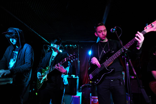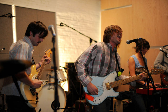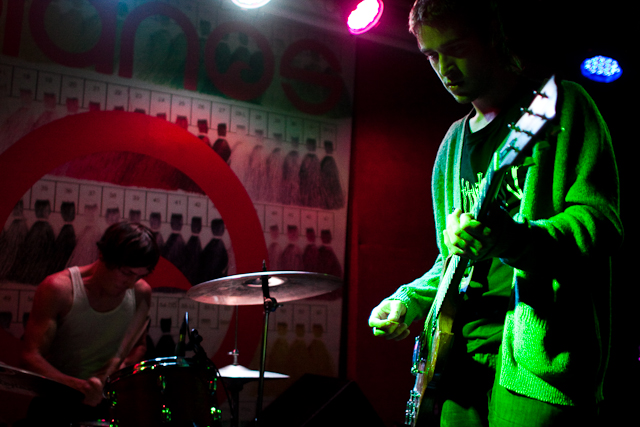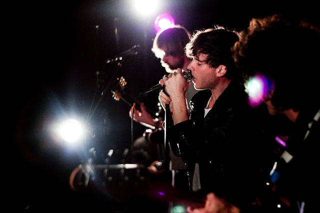 On Thursday at CMJ the xx played theIr 66th and 67th shows of the week -- one at the Apple Store SoHo, another as the "x-rated" secret guest at the horribly delayed, horribly sweaty Club NME showcase at the Delancey. The sound dudes couldn't get it together, the subterranean, reverse-gradient pit is perfect for sweltering while staring at the back of people's heads, but hey, Suckers were outstanding again, and aside from Delorean's absurd and interminable delay, their dance set is one worth catching if you can. Jessica Amaya stuck around to photograph those two and the rest, including The Antlers, Male Bonding, Bear Hands, Yes Giantess, We Are Enfant Terrible, Reni Lane, and Yes Giantess. (Earlier in the day she ventured out to the excellent, ascendant Mexican Summer label's in-studio day party at their new co-op/studio space in Brooklyn for Small Black, who are having a hell of a week, and Crystal Antlers.) Meanwhile, Kyle Dean Reinford was holding it down at Brooklyn Vegan party for Freelance Whales, Surfer Blood, Lovvers, Miles Benjamin Anthony Robinson, Peggy Sue, Alec Ounsworth, Rebecca Shiffman, and Sky Larkin, before bouncing to Fontana's for Local Natives and Happy Hollows at the Aquarium Drunkard shindig. He wrapped up his night at Glasslands for Japandroids and Real Estate at the Death + Taxes release party, and we have photos of every bold-faced band. Whoa.