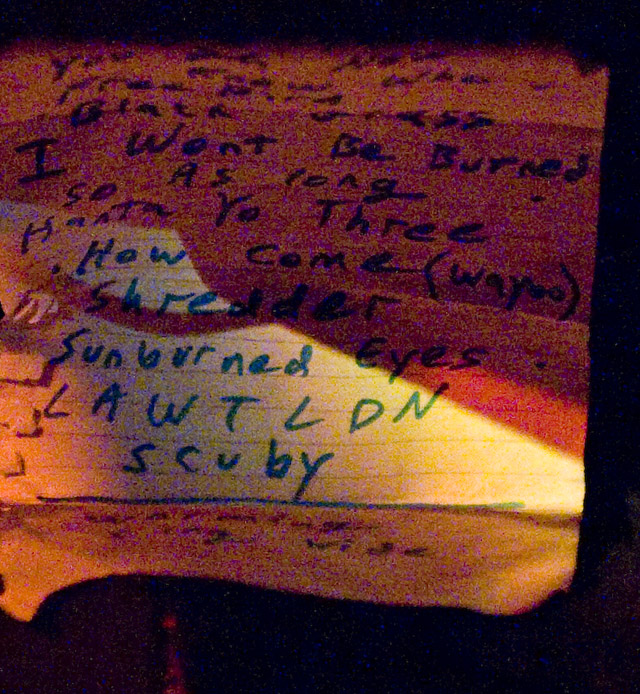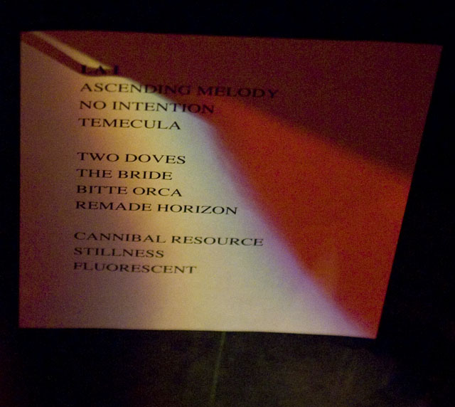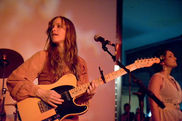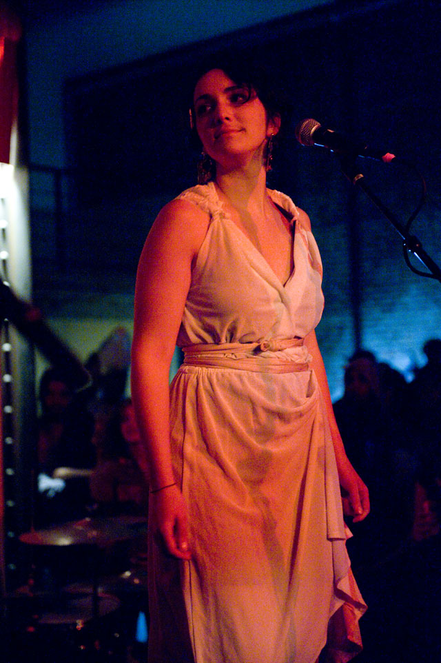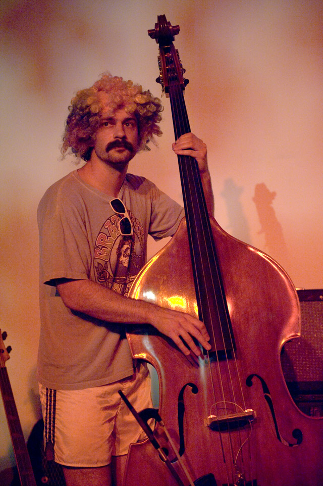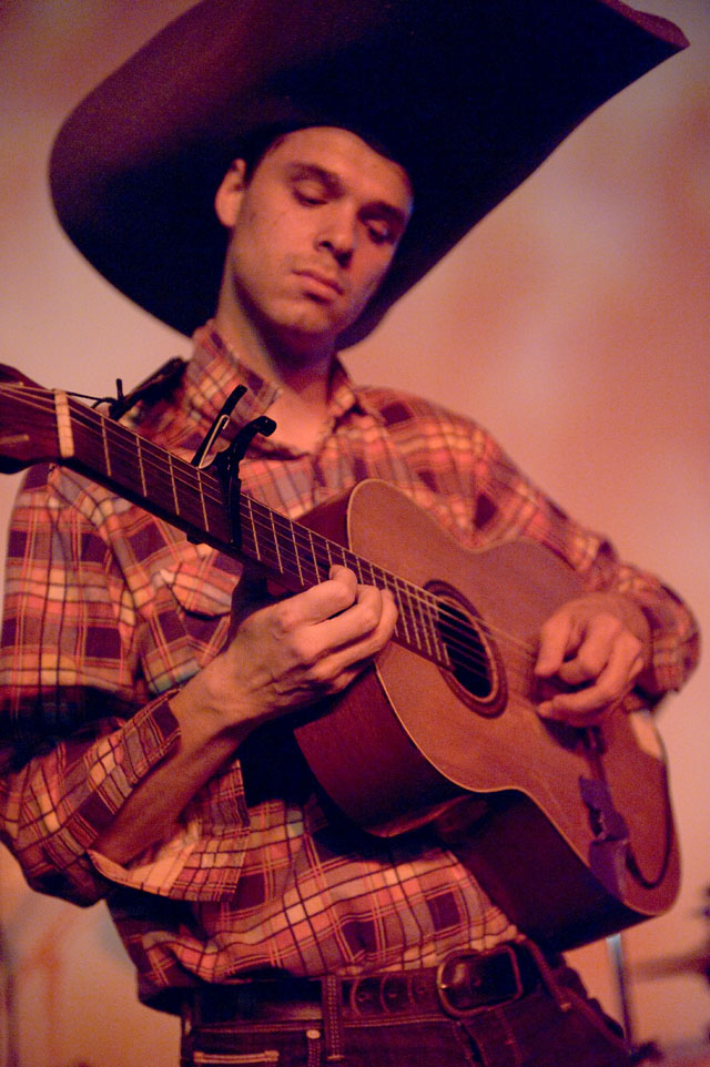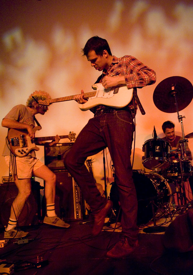 While you were out drinking as vampire Sarah Palins and slutty John McCains (research for this post conducted in 2008), musicians were celebrating Halloween in myriad ways their own: Phish covered Exile In Main Street in Indio; Titus Andronicus did an all-Weezer set while fending off security at the Vice 15 party in Williamsburg; Monsters Of Folk morphed into KISS; Pearl Jam dressed as Devo and covered "Whip It"; and doubtlessly countless more. Brooklyn's Dirty Projectors celebrated pumpkin day in Los Angeles with some silly headgear -- Longstreth in 10 gallon hat, Nat Baldwin in bozo wig, Angel in some cloth chainmail type thing -- but the DPs costume honors go to Amber Coffman who showed them up in Stevie Nicks regalia. The band played the Jensen RecCenter with openers Little Wings, and just today announced a return to Los Angeles to co-headline the Walt Disney Concert Hall with the Los Angeles Philharmonic, who will play selections chosen by Dave before the DPs do a set of their own. That isn't until February 27th (although tix are on sale 11/14/09); until then, have a pass through Andrew Youssef's shots.