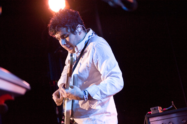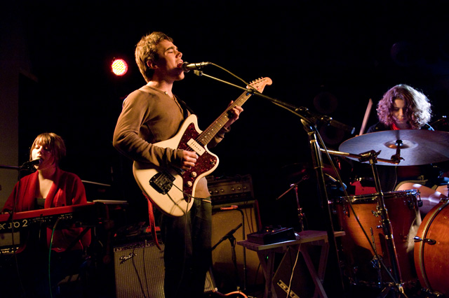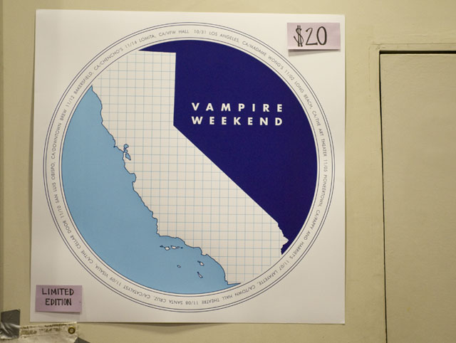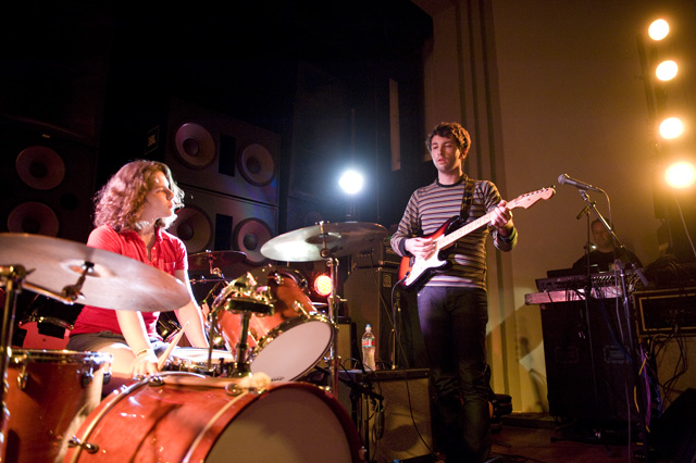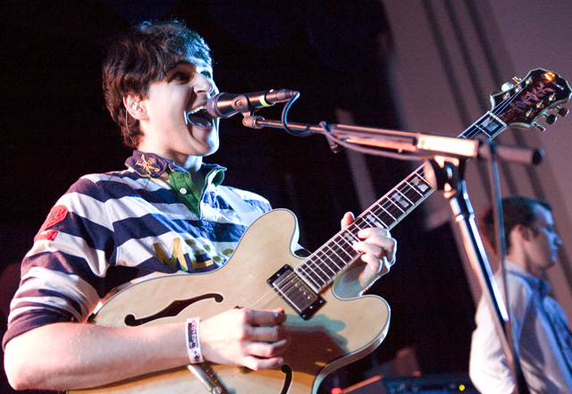 Vampire Weekend's sold out show at the Art Theater of Long Beach followed a couple of secret-ish L.A. outings -- at the former site of Madame Wong's on Halloween (Ezra was dressed as Jon Gosselin, or a douchebag, or both) and at Hollenbeck Rec Center the following day -- but Koenig called last night the first "official" show of their California itinerary (and first "movie theater" gig). Local buzz band and recent Sub Pop signees Avi Buffalo (grab an MP3 below) were there to open things up, while Ice Cream Man stuck around afterward to make sure people went home with frozen treats. Between those bookmarks, VW dedicated "Horchata" to Lola's, the Mexican restaurant across the street, and stated a number of times that they dig California. Of course, the setlist included "California English," but the song was not performed. (UPDATE: Ezra was apparently too hoarse.) As far as new ones, they also did Contra's "White Sky," "Holiday," "Run," and "Cousins." Along with Andrew Youssef's terrific photos, check out the setlist and newly expanded tour itinerary.