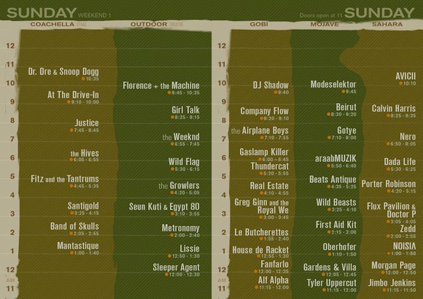 Via Twitter, Coachella announced its set times early this morning. Also on the Coachella front, Eminem, Warren G, Kendrick Lamar will join Snoop and Dre for their Sunday set (though the news post from Warren G's website has since been removed). Head below to scope the set times.