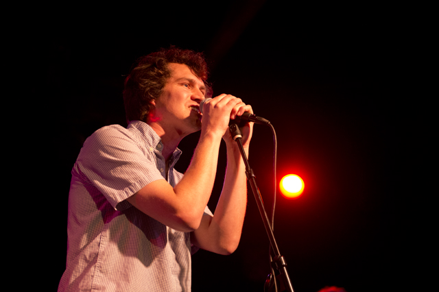 The blitz of sideshows prior to and around both Coachella weekends kicked off in grand fashion as Arctic Monkeys played to a sold out pack of rabid fans at the tiny Glass House in Pomona. Alex Turner and the boys were in top form as they rifled through an eighteen song set that included "R U Mine?" which will be released on 7" purple vinyl on Record Store Day 4/21. Fellow garage rockers the Soft Pack served as a fitting opener. Check out the pictures of Alex jumping off the drum kit above and the setlist below.