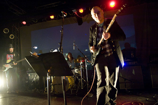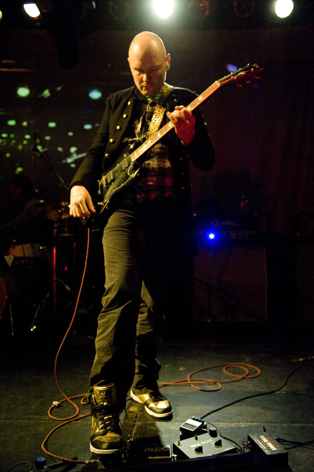 Much as Billy Corgan has made a sport of testing Smashing Pumpkins fans' limits this past year, last night's benefit for one-time Smashing Pumpkins Fan Club chief Laura Ann Marusa is a reminder that he really does appreciate those that appreciate him. Of course Laura isn't just your average Pumpkin lover; in addition to making delicious artisanal jams, Masura is a musician in her own right, a Chicago scene drummer and founding member of the bands Evil Beaver, the Prescriptions and Motorhome. A ghastly motorcycle accident shattered her leg, and her health care doesn't cover much of the fallout. True to his beneficial mode of 2009, Billy anchored last night's benefit show at the Echoplex, creating the band Backwards Clock Society for the event, featuring Mark Tulin of the Electric Prunes on bass along with longtime Pumpkin associate Kerry Brown, ex-Catherine drummer and ex-Mr. D'arcy Wretzky (who has recently been found, btw).