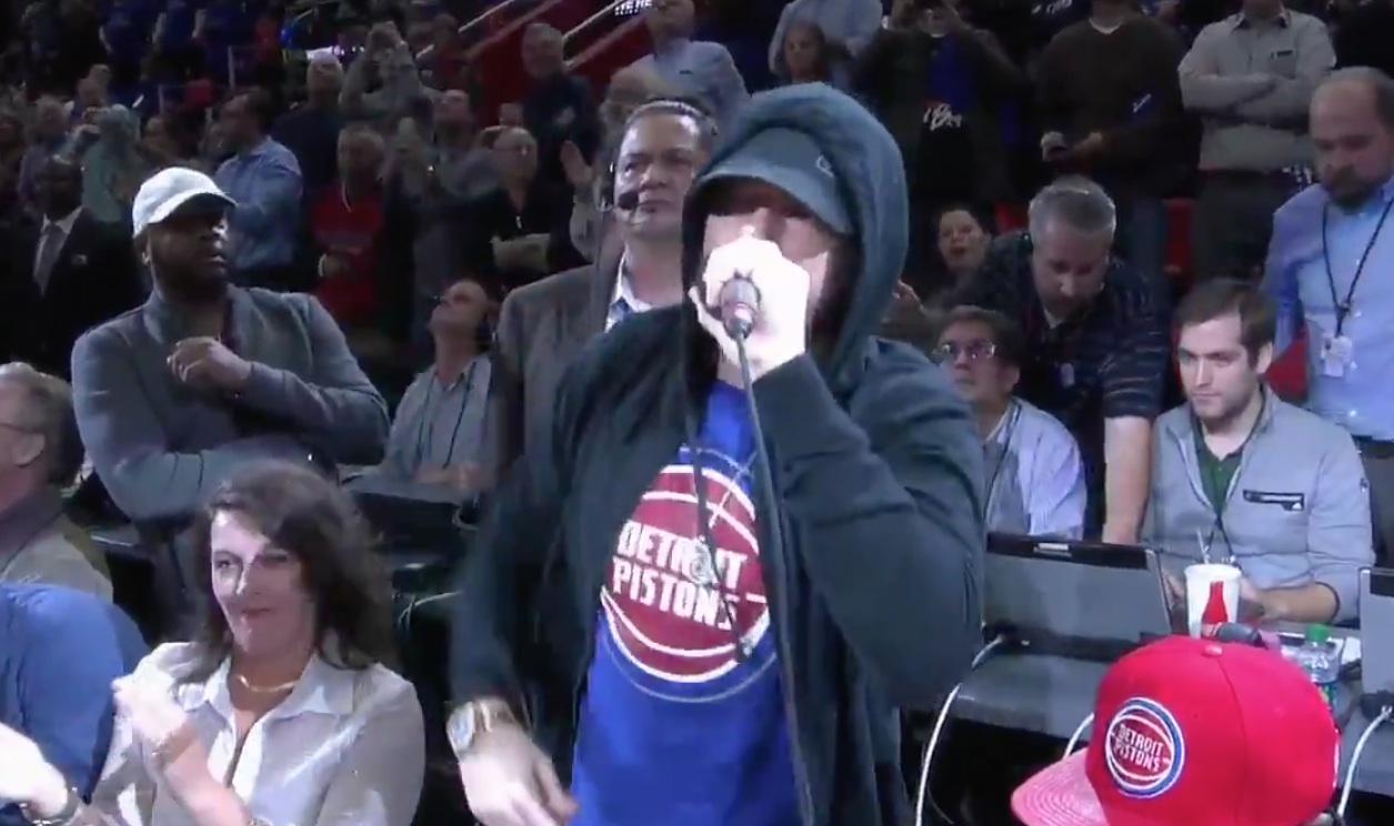 Watch Eminem Introduce The Detroit Pistons On Opening Night At Their New Arena