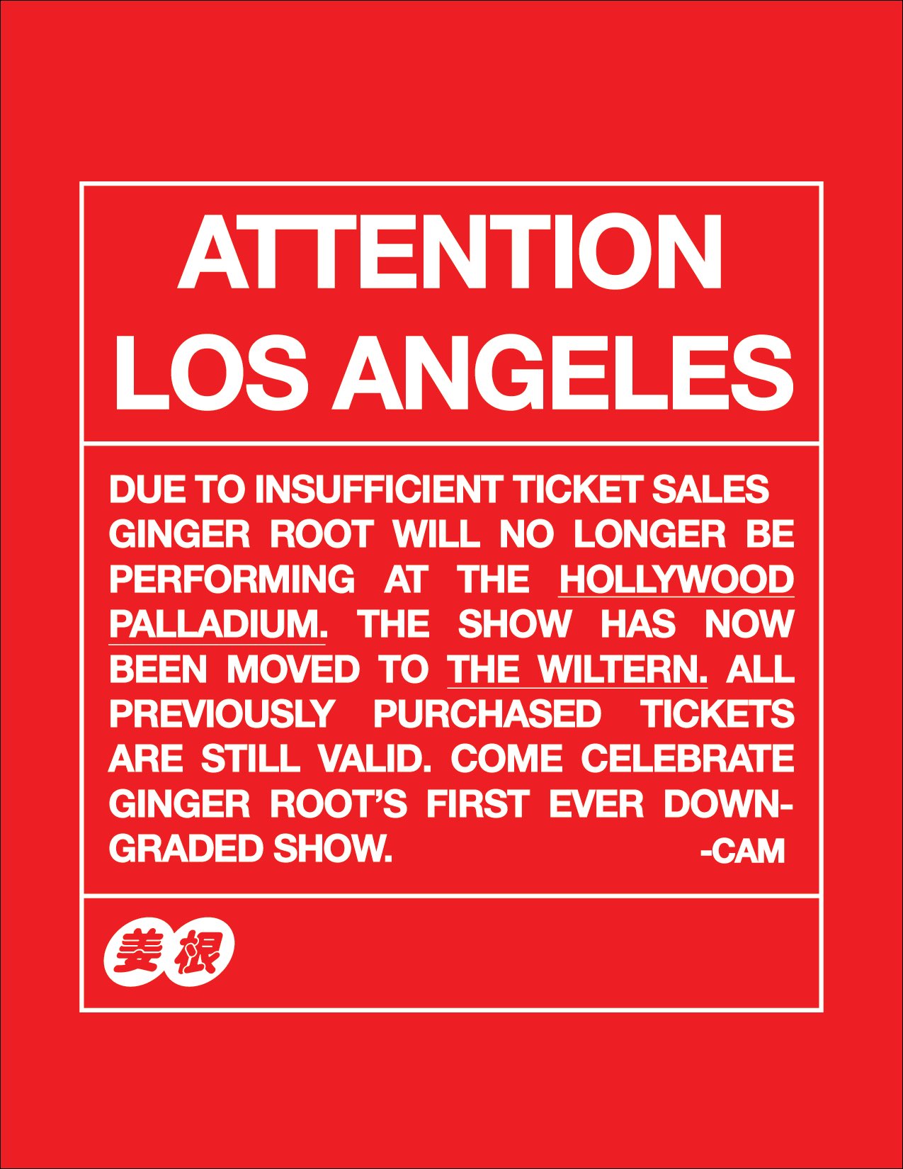 Ginger Root Praised For Transparent Announcement About Downgraded Venue