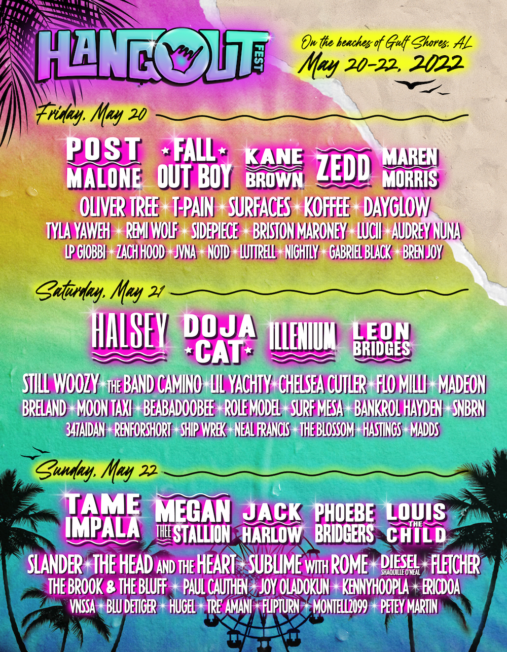 Hangout Fest 2022 Headlined By Post Malone, Tame Impala, & Halsey