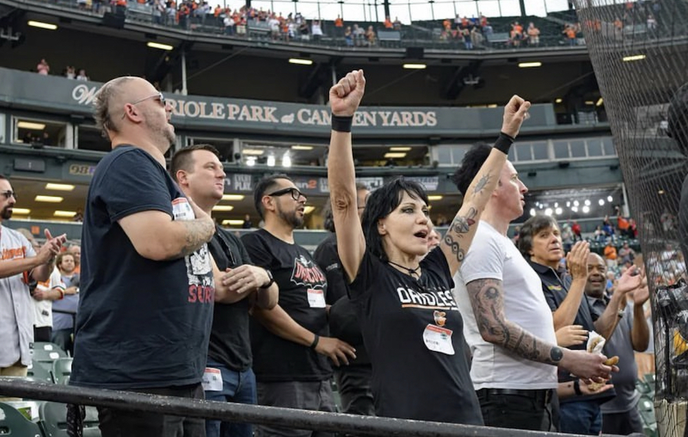 Baltimore Orioles Superfan Joan Jett Helps Announce Game, Photobombs Team Picture