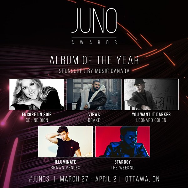 Drake, Grimes, Leonard Cohen, Dilly Dally, Tegan And Sara Among 2017 Juno Nominees