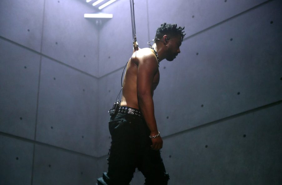 Miguel Performs While Suspended From Hooks In His Skin
