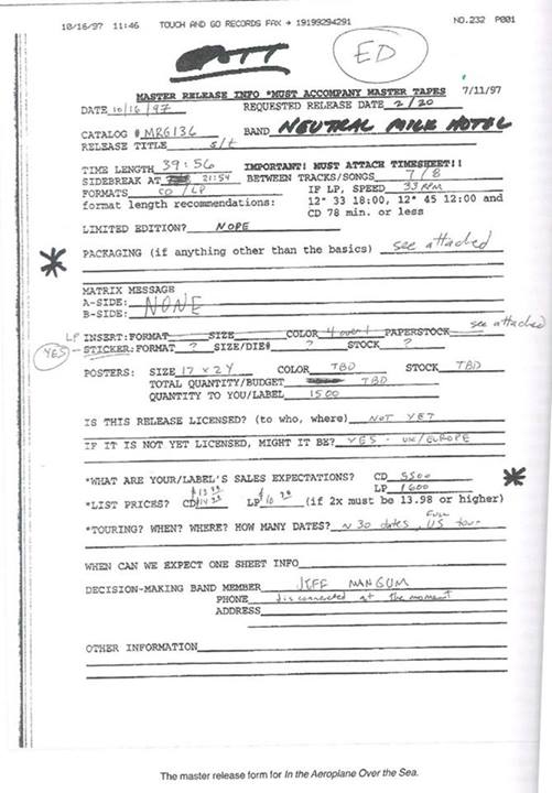 Check Out The Original Master Release Info For Neutral Milk Hotel’s