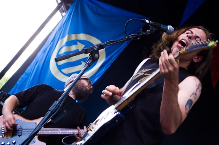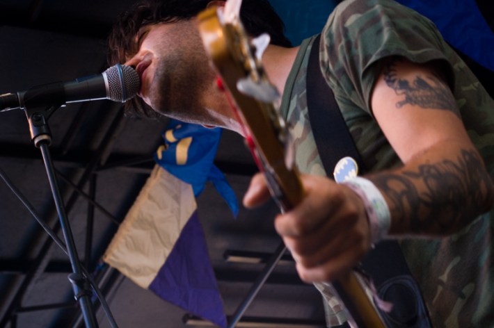 I arrived at the festival in time to see Milk Music, the Washington State Hüsker Dü reincarnates. It hasn’t been long since Milk Music first started popping up on people’s radars, but the band reinforced what is already known about them in their short, riffy set, which is that they don’t give a shit. And I mean this in the most complementary way; they care about all the right stuff, like taking a couple of seconds to make sure everything sounds good (there were a couple of false starts during the set) but everything else, like playing the few songs people know or really trying to engage the audience is not something they particularly care about. And, in this day in age, it’s kind of charming. I moved over to the Red Stage for Ty Segall, who, with help from his fleshed-out, all-star band, sounded tighter, stranger, and louder than ever. I’m getting a much better grip on the music as time goes on -– but man, I still don’t know exactly what Ty Segall’s deal is (“On the count of three, yell “Dwyer!,” Segall shouted during his set. Who Dwyer was, exactly, was never clarified). They also played a straightforward cover of AC/DC’s “Dirty Deeds,” cuz why not.