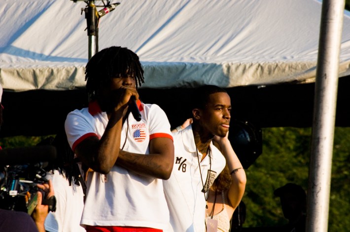 Sunday’s lineup at Pitchfork opened with the promise of two “secret” guest spots – one that happened, one that didn’t – and an extremely anticipated sets from festival closers Vampire Weekend and Beach House. Read the recap below and check out photos from Carmelo Espanola up top (Friday’s recap here, Saturday here).