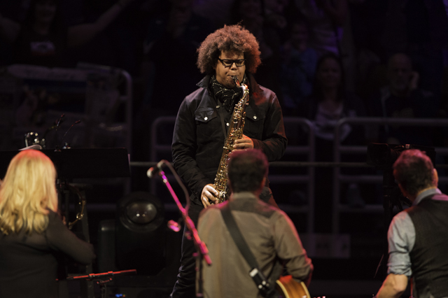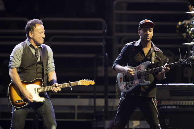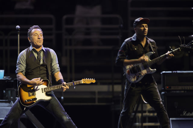 Twenty-eight songs and a running time slightly over three hours. These are the hallmarks of a Bruce Springsteen live show. It was a special night from the start as Tom Morello from Rage Against The Machine walked onstage with the members of the E Street Band at the onset for a ripping version of "Land Of Hope And Dreams." Morello guested throughout the evening, adding his sonic wizardry to "Death To My Hometown,""This Depression," "Badlands," "Tenth Avenue Freeze-Out," and a mind blowing whammy pedal solo on "The Ghost Of Tom Joad." The other surprise of the evening was Mike Ness showing up with his Les Paul for a slick rundown of Social Distortion's "Bad Luck." These were just a few of the many highlights that included the shimmery acoustics of "Waitin' On A Sunny Day," a barnstorming rendition of "Thunder Road," and the whole band donning Santa hats for "Santa Claus Is Coming To Town." Check out the gallery above and the lengthy setlist below.