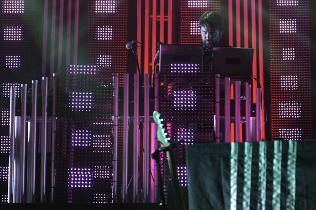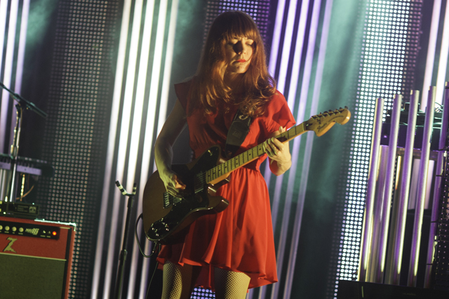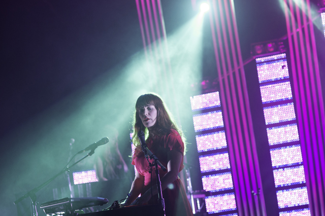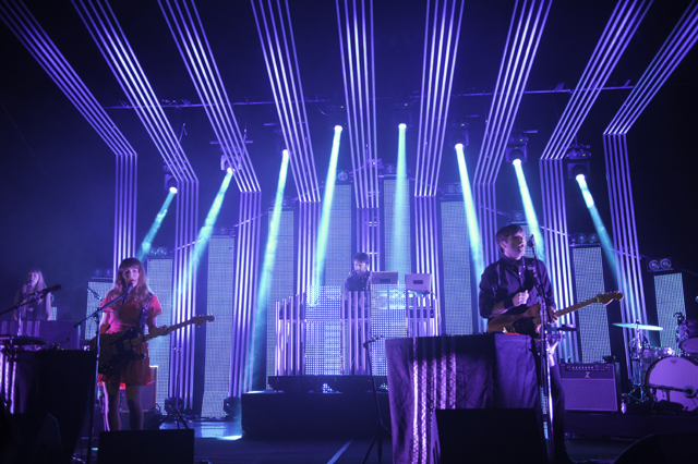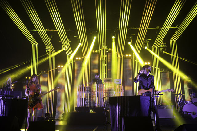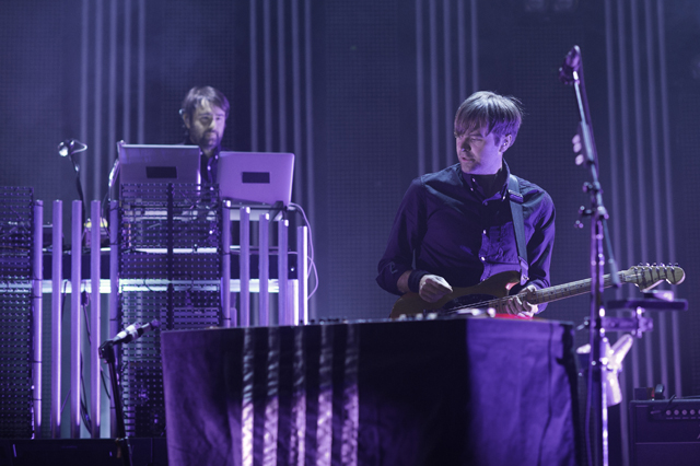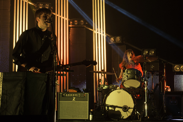 The Postal Service delivered the goods for their first show in nine years. Celebrating the tenth anniversary and re-release of their platinum debut album Give Up, Ben Gibbard, Jimmy Tamborello, Jenny Lewis, and Laura Burhenn put together a sparkling sixteen song set with all the electronic bloops and bleeps in their right places. Opening the evening was electronic wizard Baths who kept commenting how crazy it was that the Postal Service was going to play after him. Check out the photos in the gallery above and the setlist and live video of "We Will Become Silhouettes" below, plus a new Q&A with Ben and Jimmy about the genesis of the project.