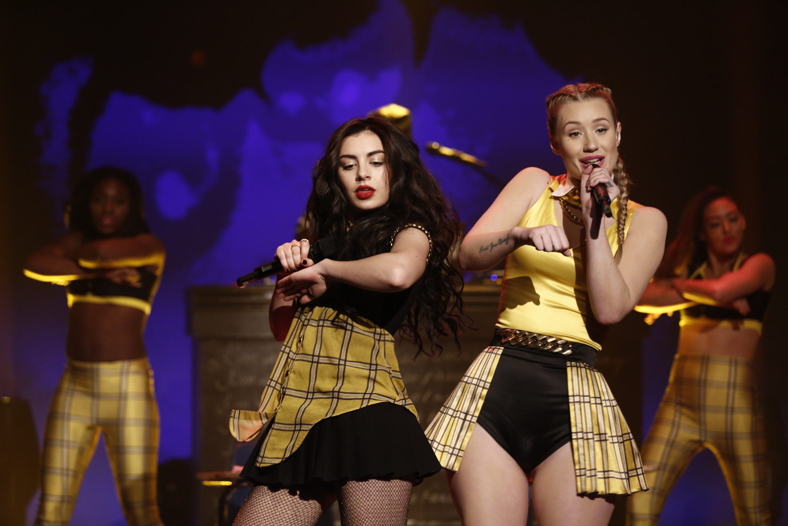 Iggy Azalea and Charli XCX have been catching a lot of attention for their duet "Fancy" and its Clueless-themed video, including a performance of the tune at mtvU's Woodie Awards in Austin during SXSW. Last night that buzz carried them to Late Night With Seth Meyers, where the Clueless motif was still in full effect. Watch the performance below.